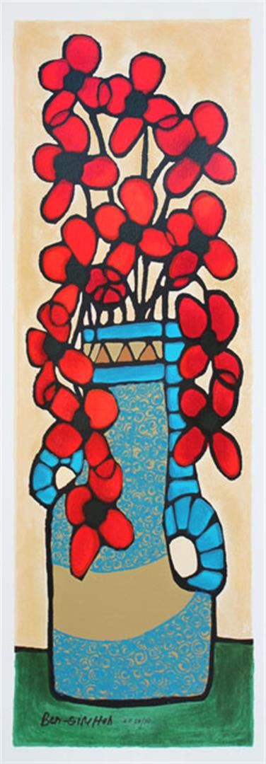 Avi Ben-Simhon Red Blossoms I. Artist: Avi Ben-Simhon - Title: Red Blossoms I - Medium: Serigraph on Paper - Signature: Hand-signed by the Artist - Edition: 450 - Image Size: Approximately 26 ¾ inches x 8 ¾ inches - Paper Size: Approximately 28 ¾ inches x 10 ½ inches - Unframed - Details: This work comes with a Certificate of Authenticity - Biography: Avi Ben-Simhon has been deeply inspired by Fauvist and Cubist painters, while creating his signature, unmistakable style. The element of design is strongly developed in his work, in composition and pallet, while the dramatic shapes and vibrant colors powerfully express his joie de vivre. His spiral-like motifs echo his Moroccan roots, each pattern forming an exceptional design in bright and effervescent colors.