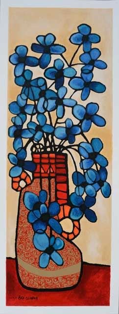 Avi Ben-Simhon Tranquility. Artist: Avi Ben-Simhon - Title: Tranquility - Medium: Serigraph on Wood - Signature: Hand-signed by the Artist - Edition: DLX 145 - Image Size: Approximately 27 inches x 9 inches - Unframed - Details: This work comes with a Certificate of Authenticity - Biography: Avi Ben-Simhon has been deeply inspired by Fauvist and Cubist painters, while creating his signature, unmistakable style. The element of design is strongly developed in his work, in composition and pallet, while the dramatic shapes and vibrant colors powerfully express his joie de vivre. His spiral-like motifs echo his Moroccan roots, each pattern forming an exceptional design in bright and effervescent colors.