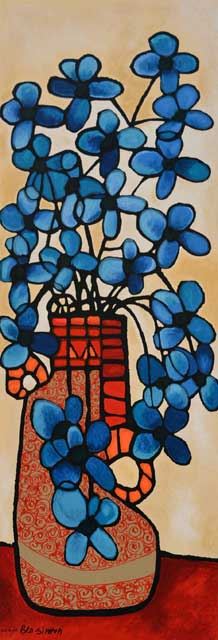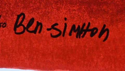 Avi Ben-Simhon Tranquility. Artist: Avi Ben-Simhon - Title: Tranquility - Medium: Serigraph on Wood - Signature: Hand-signed by the Artist - Edition: DLX 145 - Image Size: Approximately 27 inches x 9 inches - Unframed - Details: This work comes with a Certificate of Authenticity - Biography: Avi Ben-Simhon has been deeply inspired by Fauvist and Cubist painters, while creating his signature, unmistakable style. The element of design is strongly developed in his work, in composition and pallet, while the dramatic shapes and vibrant colors powerfully express his joie de vivre. His spiral-like motifs echo his Moroccan roots, each pattern forming an exceptional design in bright and effervescent colors.