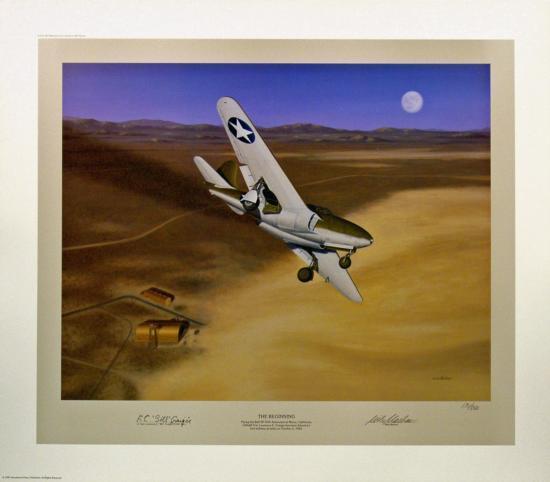 Although not as sleek as the planes that would soon follow, the Bell XP-59 entered the history books as America's first jet aircraft. Although outclassed in performance by the top propeller driven fighter os the day, the XP-59A was an invaluable tool for the USAAF transition to jet power. This is a L/E of 850 prints and is sign by the artist and personally autographed by America's First Jet Pilot Lt. Gen. Laurence "Bill" Craigie. A real piece of history and one aviation art print that should be in everyone's collection. This print has never been mounted and is in perfect condition. It comes with a COA that is suitable for framing and has an image size of 17" x 22".