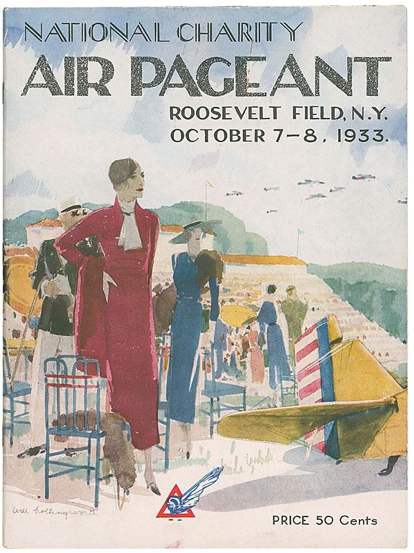 Original program, 9 x 12, 84 pages, for the National Charity Air pageant held on October 8-9, 1933, at Roosevelt Field, New York. Great program full of interesting articles on aircraft and flying techniques. A ticket stub to the event is paper clipped to the first page. In fine condition, with some light handling wear and a rusty paperclip mark.