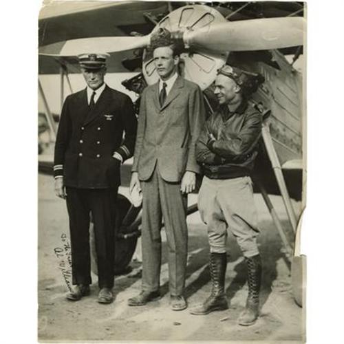 <B>Aviator Al Williams Signed Photograph,</B></I> 11” x 14”. Williams (in uniform) poses with Charles A. Lindbergh and Jimmy Doolittle. Creases along top edge, very good condition. Alford J. Williams (1891 - 1958) was instrumental in the development of dive bombing tactics that helped win World War II. A Navy flyer from the beginning, he was also a test pilot and made the first solo flight to Hawaii from the U.S. mainland. <I>From the collection of Cliff Henderson.</B></I><BR><BR><b>Shipping:</b> Flat Material, Small (<a target="_blank" href="http://www.heritageauctions.com/common/shipping.php">view shipping information</a>)