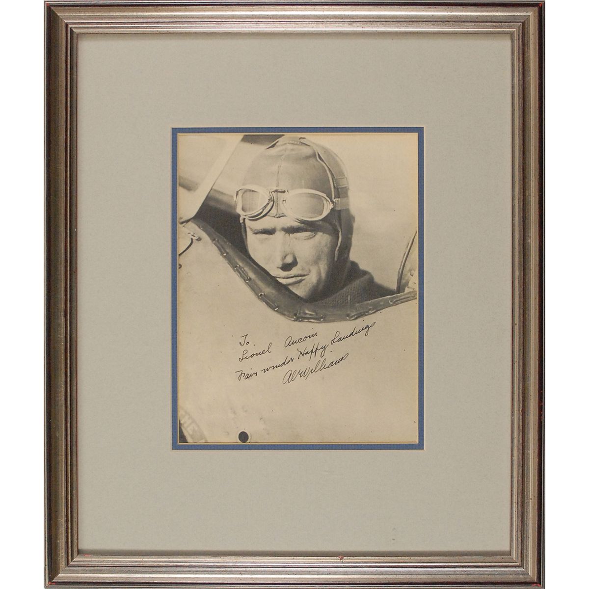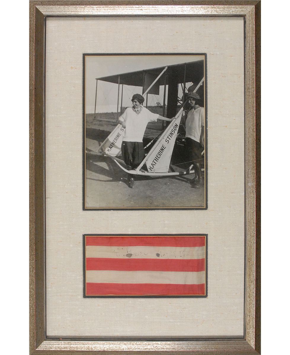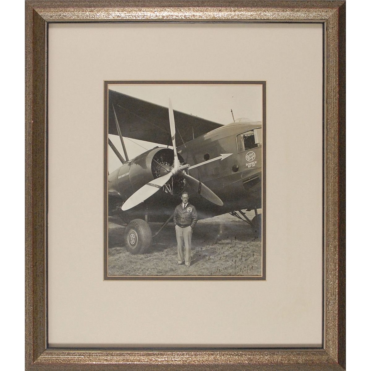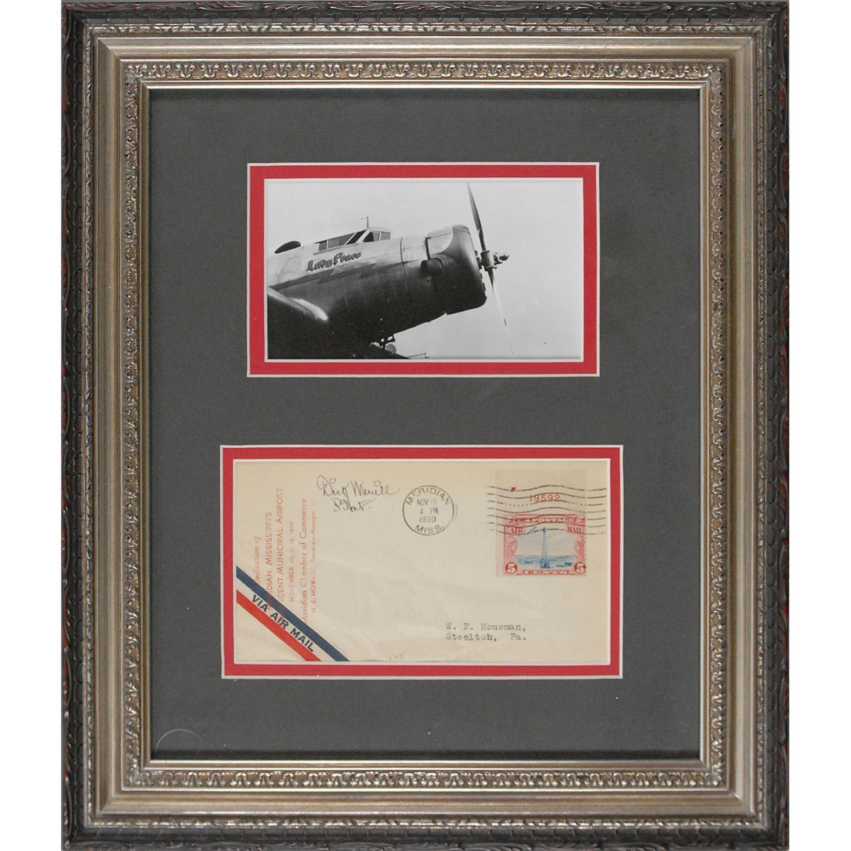 Collection of 14 framed items, primarily comprised of photos signed by famous aviators, including: Harry Richman (SP); Walter Hinton, James L. Breese, and Eugene S. Rhoads (SP); Ruth Bancroft Law (ANS); Dick Merrill (airmail cover); Douglas ‘Wrong Way’ Corrigan (SP); Clyde Pangborn (SP); Clarence Chamberlin (SP); Major Alfred Joseph Williams (SP); Chuck Yeager (SP); Frank Hawks (SP); Katherine Stinson (fabric); Amy Johnson and Jim Mollison (signatures); Elly Beinhorn (SP); and one other. All are attractively matted and framed to overall sizes ranging from 6 x 9 to 15 x 22. In overall very good to fine condition. An outstanding assemblage of aviation legends and innovators.