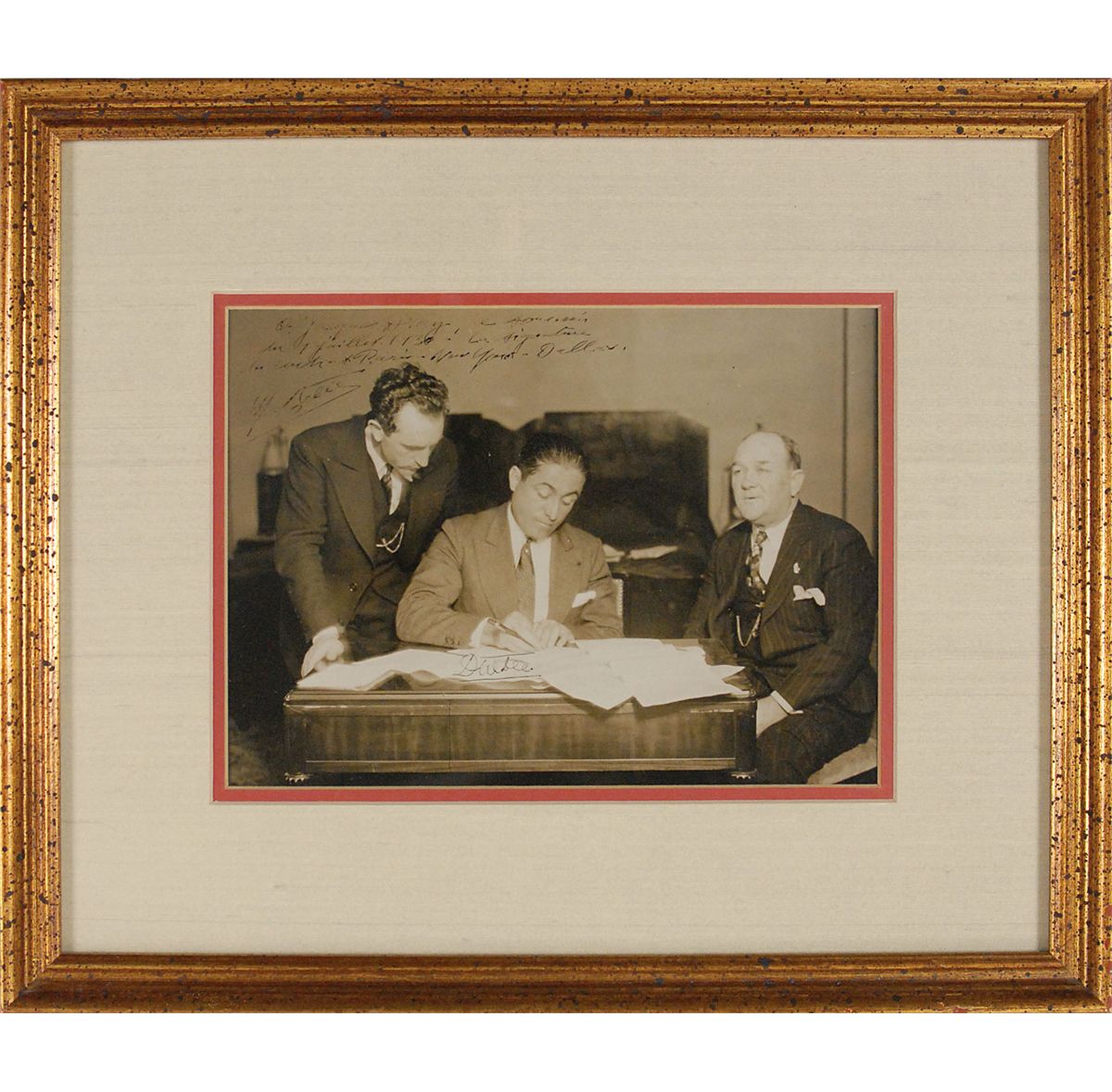 During live Auctions, internet bids can be placed in real time through the following services: www.RRAuction.com, www.liveauctioneers.com, www.artfact.com and www.icollector.com. On some occasions beyond the control of RR Auction, the bid software or the Internet itself may not physically keep up with the pace of the auction. In order to help avoid disappointment, RR Auction recommends placing a realistic absentee bid now. Since Artfact and iCollector (hereinfafter referred to as “Third Party sites”) bids are not shown to RR Auction until RR Auction opens the lot on the floor, RR Auction treats those bids the same as floor or telephone bids. In most cases, however, the floor and/or telephone responds before the Third Party sites bid is presented, due to Live Internet bid software or Internet lag time, so for consistency it is RR Auction’ policy that floor bids and telephone bids are always considered first over Third Party sites bids with floor bids being considered before telephone bids. Also please note that all RR Auction lots purchased through the Third Party sites carry an additional Buyer’s Premium. RR Auction strongly urges the bidder to resolve any questions about these policies or their implementation PRIOR TO BIDDING.