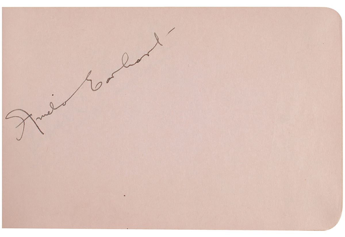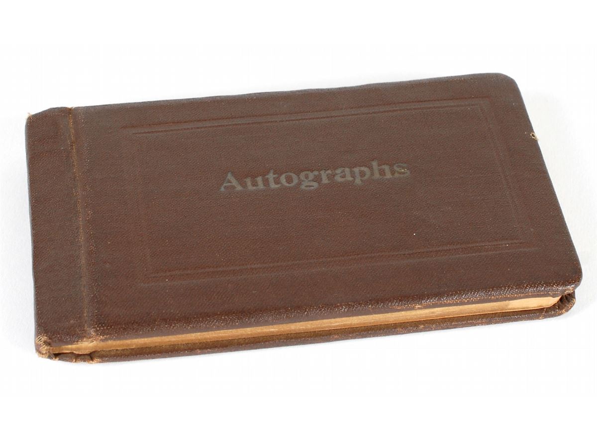 Hardcover autograph album, 6.25 x 3.75, signed inside in fountain pen by important aviators Amelia Earhart, Wiley Post, James H. Doolittle, and Roscoe Turner, with Turner signing on the reverse of an affixed ticket to an aviation association dinner-dance. In fine condition.