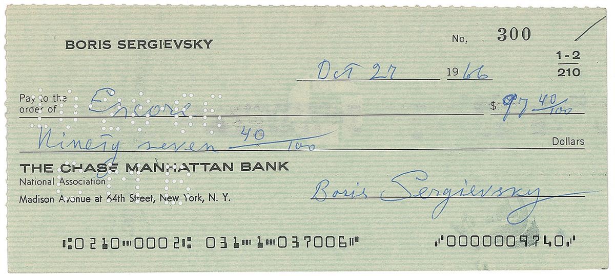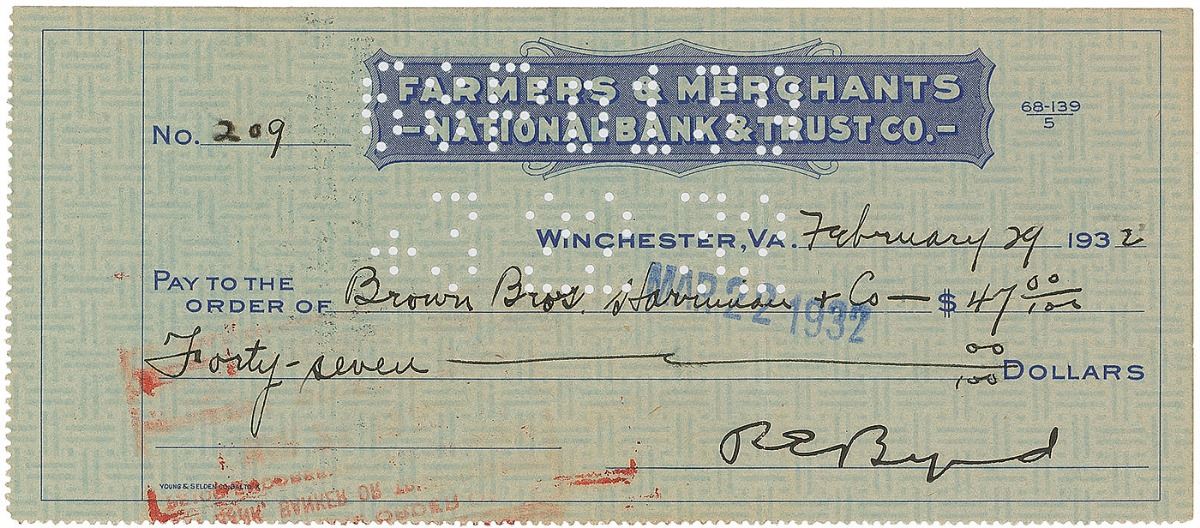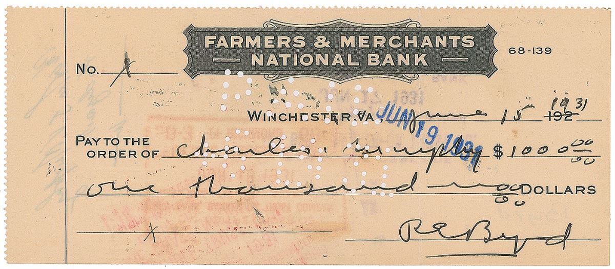 All deliveries are subject to good funds; funds being received in RR Auction's account before delivery of the Purchases; and all payments are subject to a clearing period. RR Auction reserves the right to determine if a check constitutes "good funds": checks drawn on a U.S. bank are subject to a ten (10) calendar day hold, and ten (10) business days when drawn on an international bank. Clients with pre-arranged credit status may receive immediate credit for payments via e-Check, personal or corporate checks.