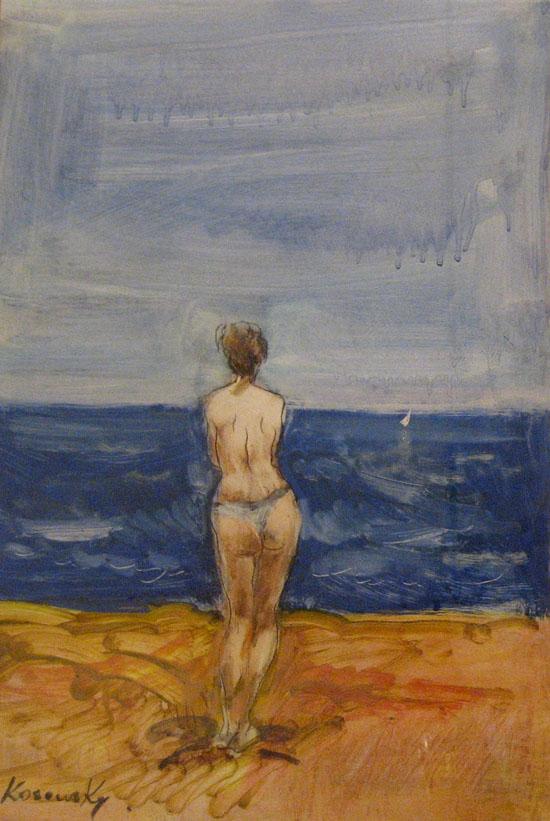 Avinoam Kosovsky, Israeli Art, B. 1949, Nude, Oil on paper, 34x23cm, Signed., , , , ,