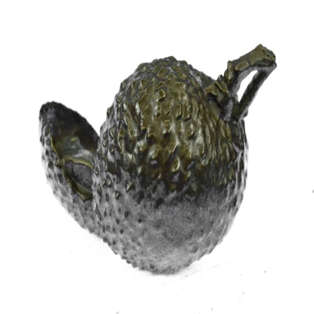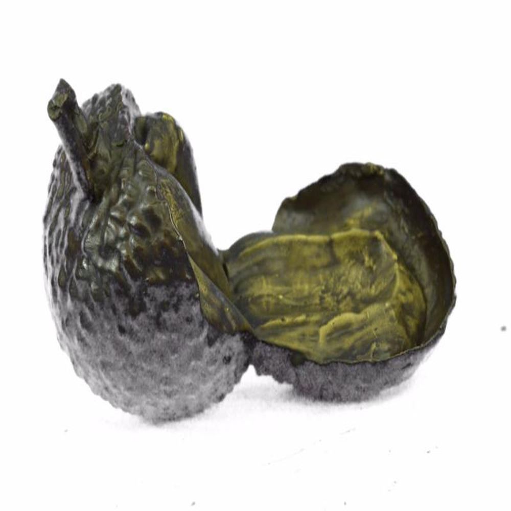 An Hot cast Bronze Sculpture of an avocado is a highly detailed and realistic rendition of an avocado, almost indistinguishable from nature. The dark Brown skin is textured in a natural manner, with a rich patina. Bronze Dimensions: Height 5 X Width 8 inches. Weight: 5 LBS.