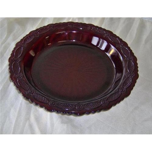 This luscious ruby-red pie plate is 10 5/8 inches across, and, of course, is edged with the attractive Avon Cape Cod design.</em></td>