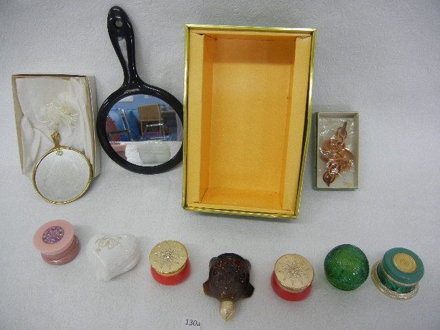 Avon Jars, Rose Box, Japanese Hair Clip, and 2 Hand Mirrors, 1 Made in West Germany