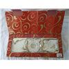 set of 3 porcelain ornaments with 24 K gold accents. 1 sleigh, 1 wreath with doves and 1 angel holding a harp.