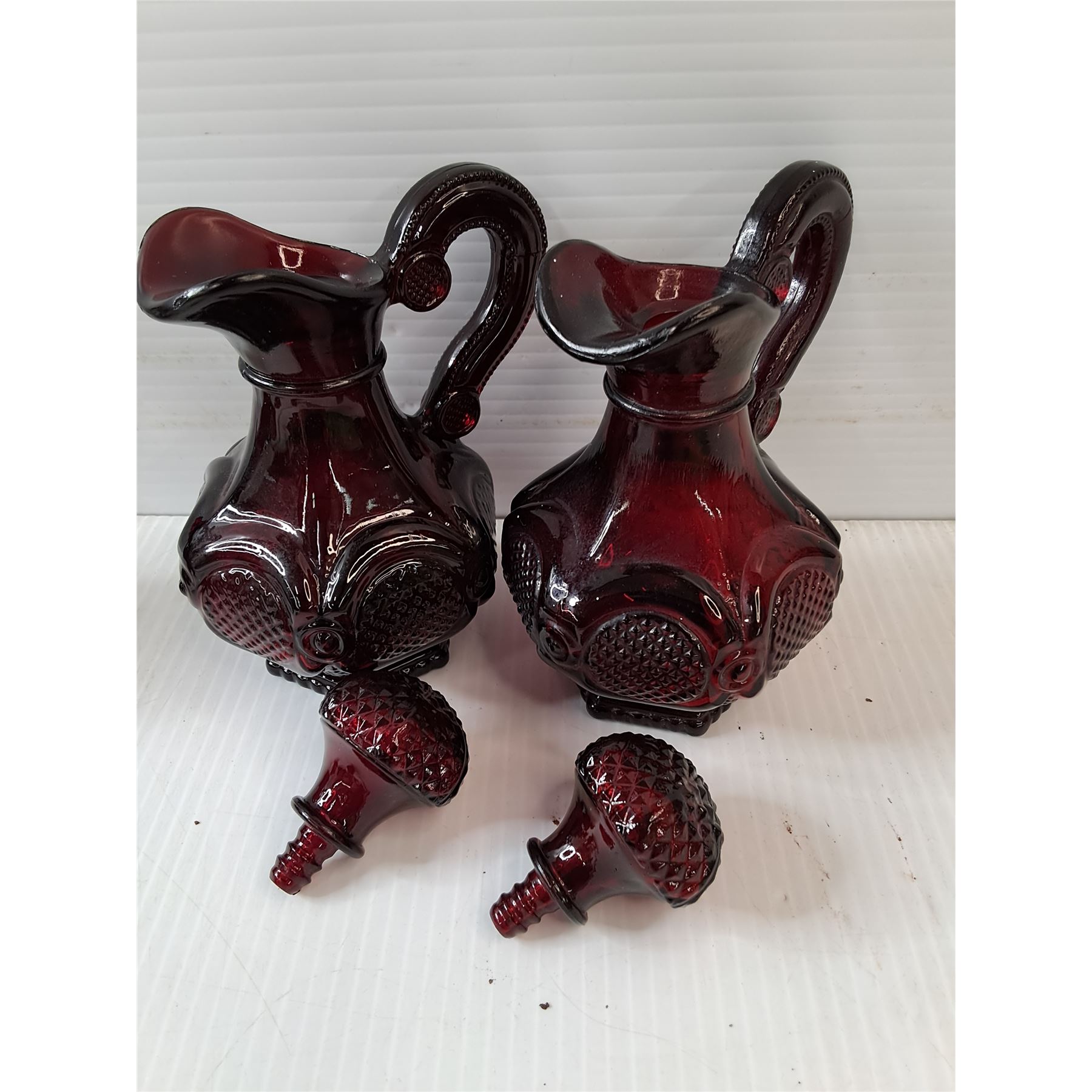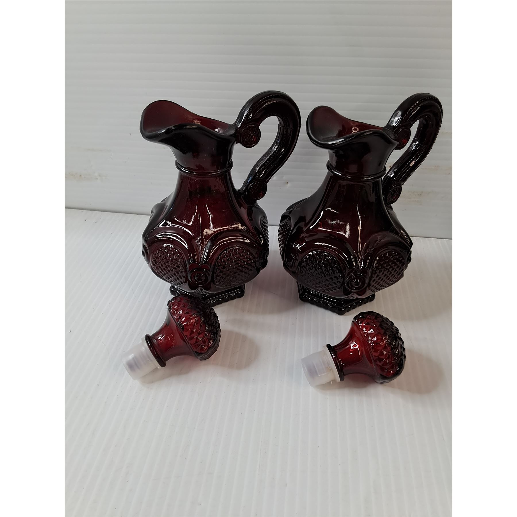 Avon Ruby Red Pressed Glass Cruet Bottle Pitchers - AS IS