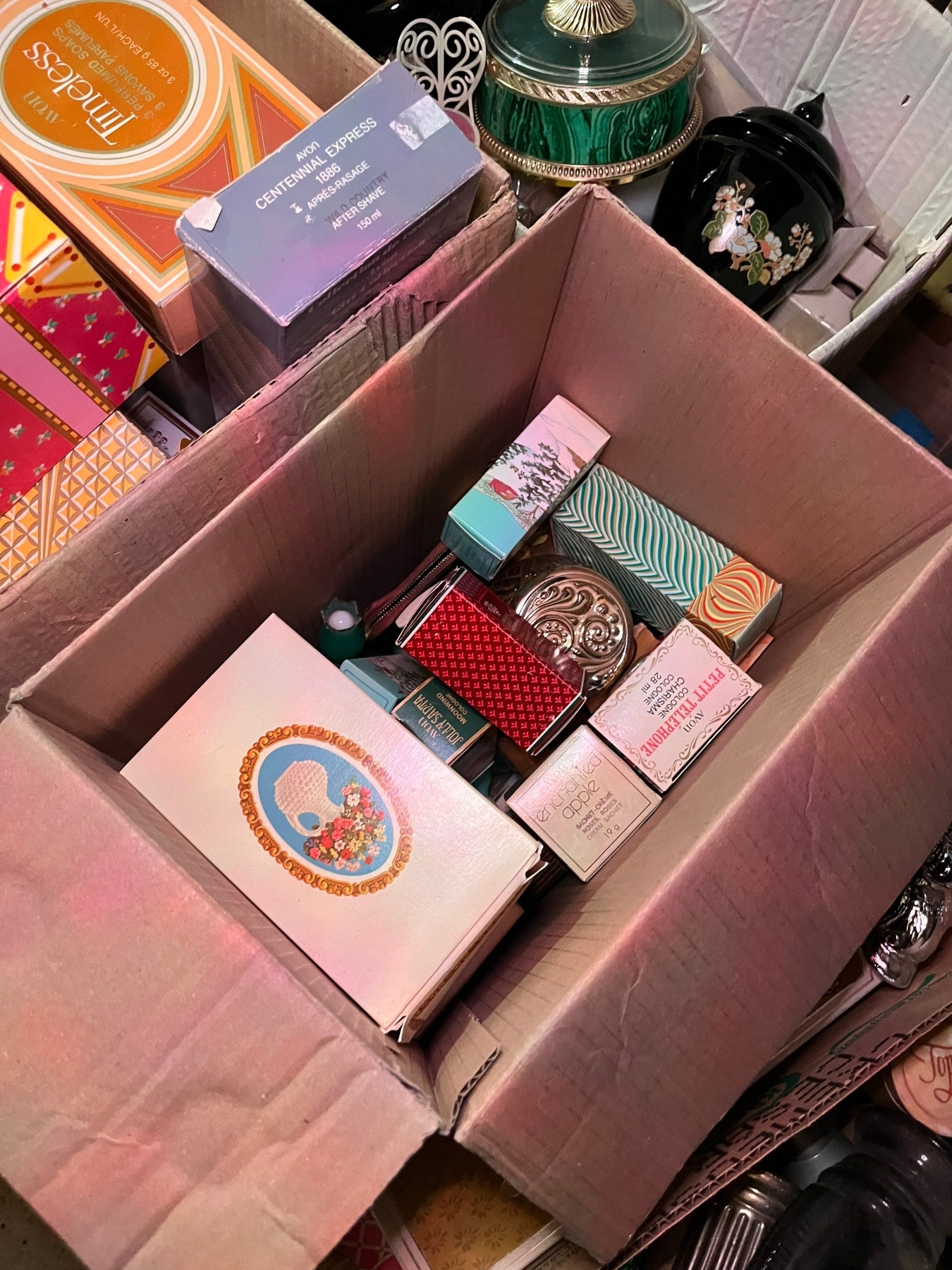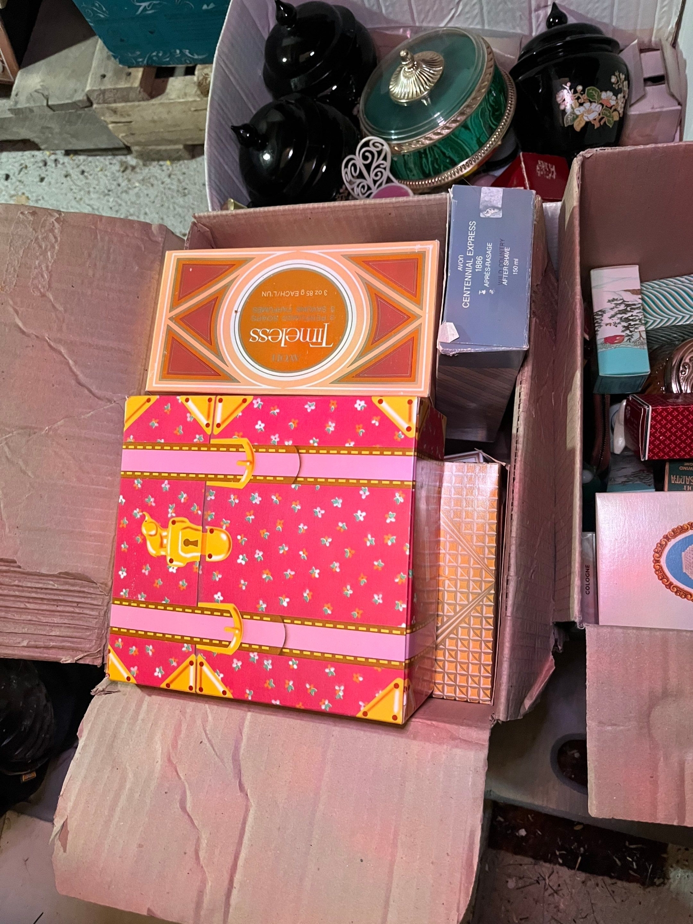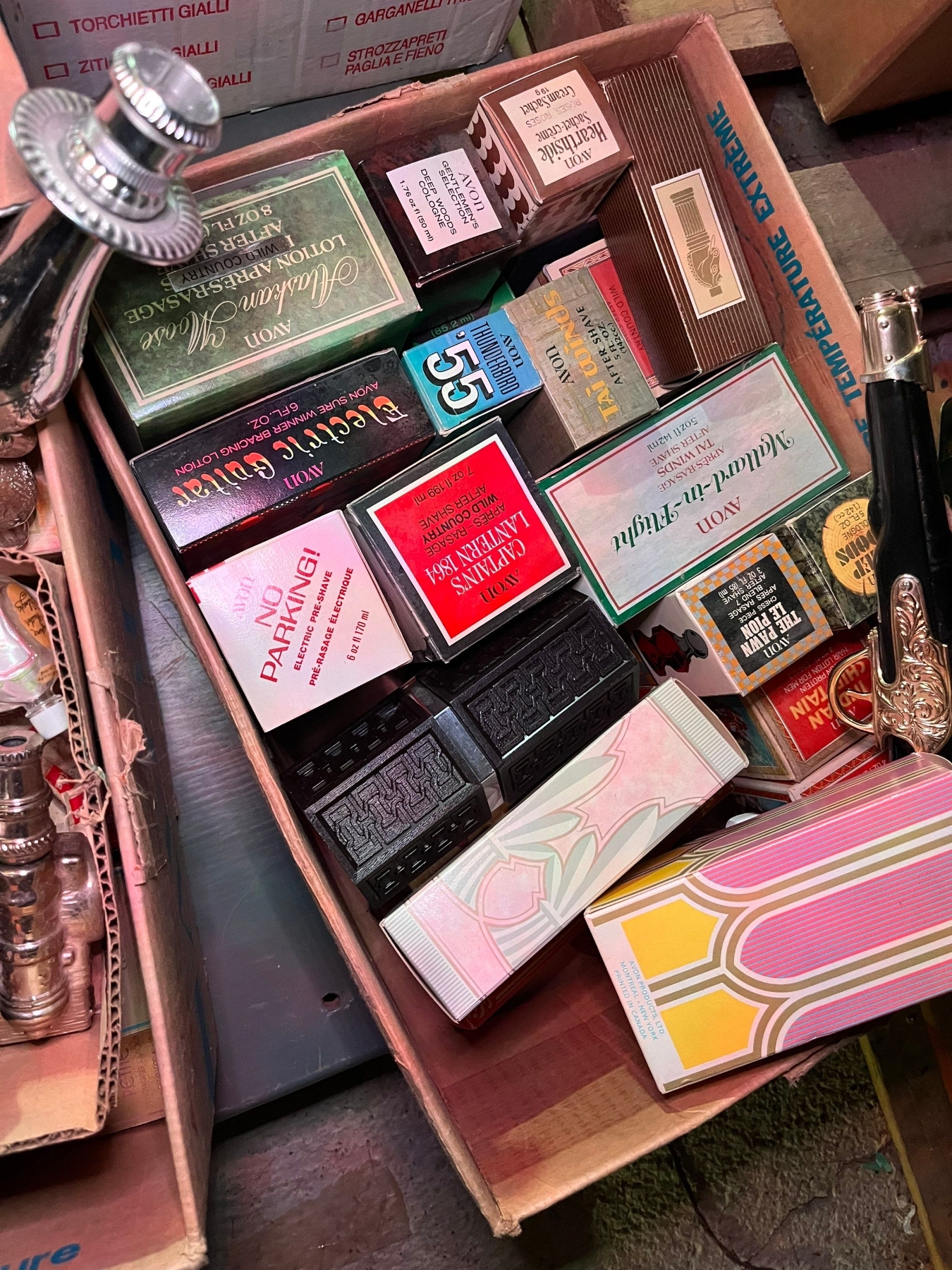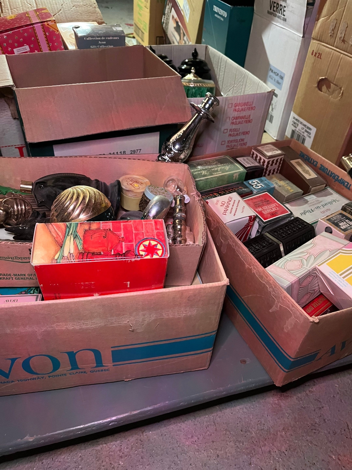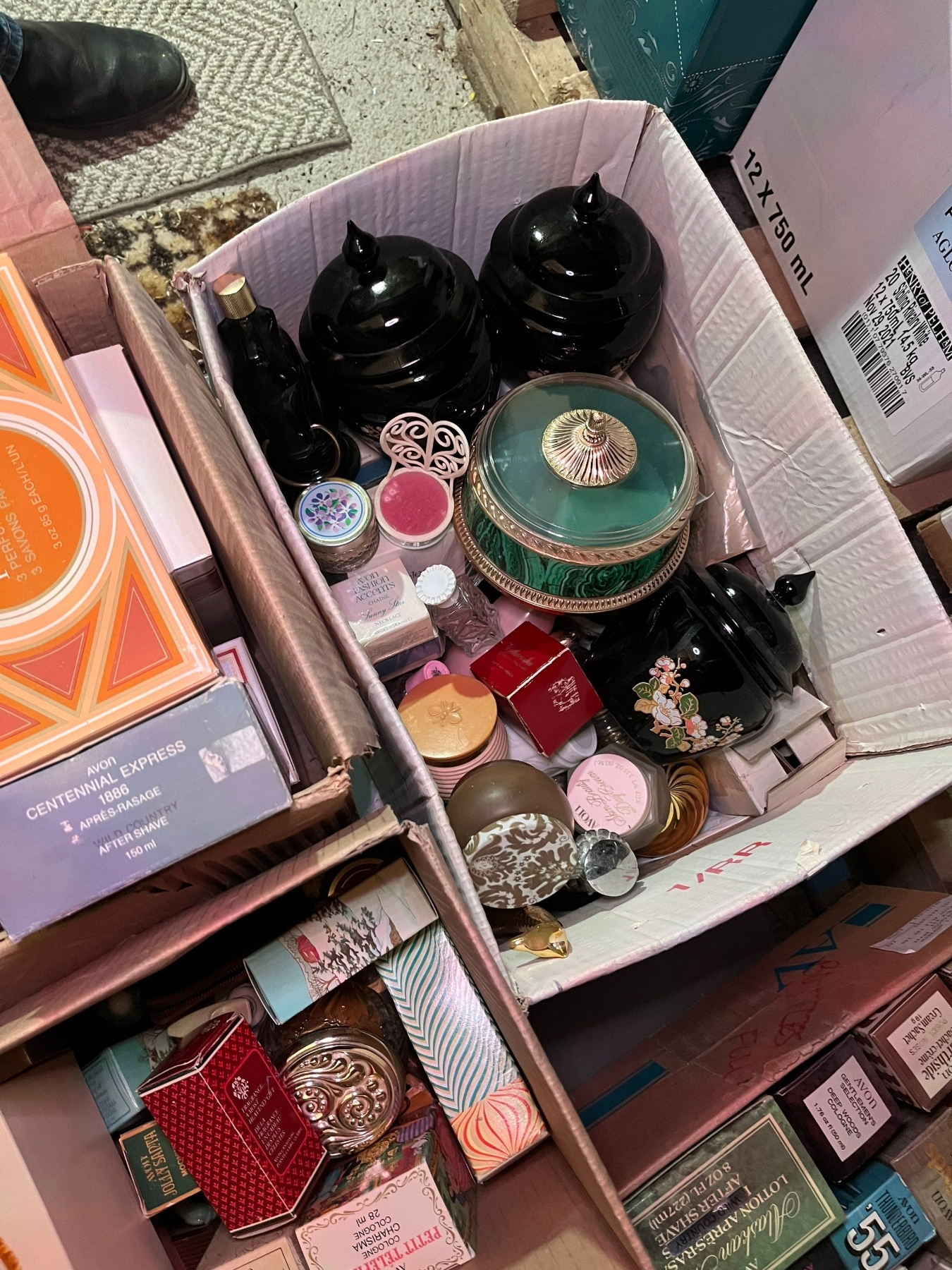 Avon mother load of several hundred bottles highly collectable unopened and unresearched ready for a new home amazing collection. This is the last lot of Avon so don’t miss out.6 full boxes .