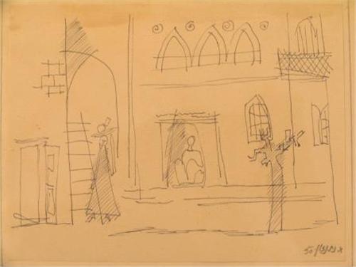 Avraham Naton, 1906 - 1959, Jaffa, 1950, Indian Ink, 12x16 cm, Signed and dated, , , , ,