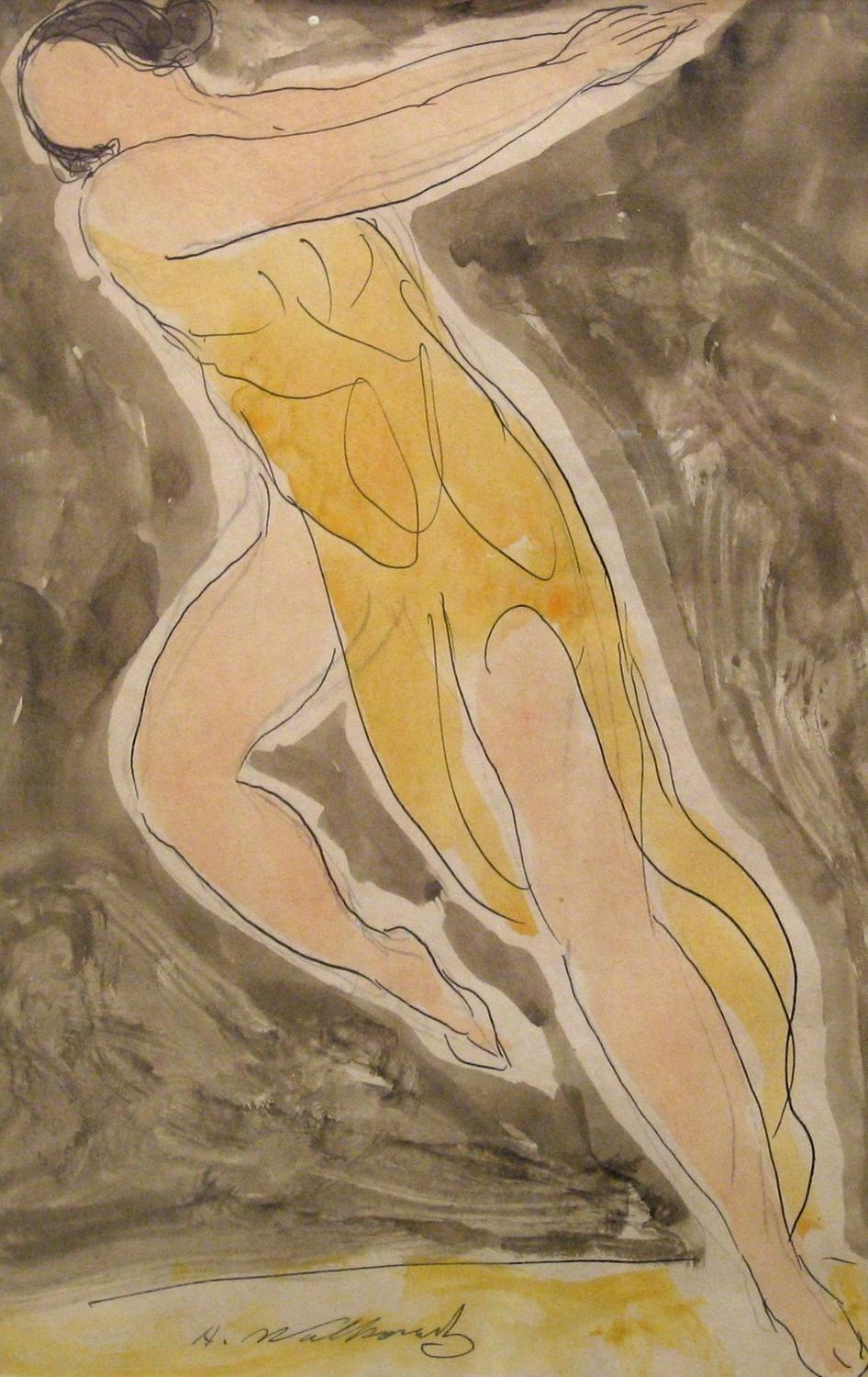 Avraham Wallkovitz, , 1880 - 1965, Isadora Duncan, Wash and watercolor, 32x21cm, Signed., , , , ,