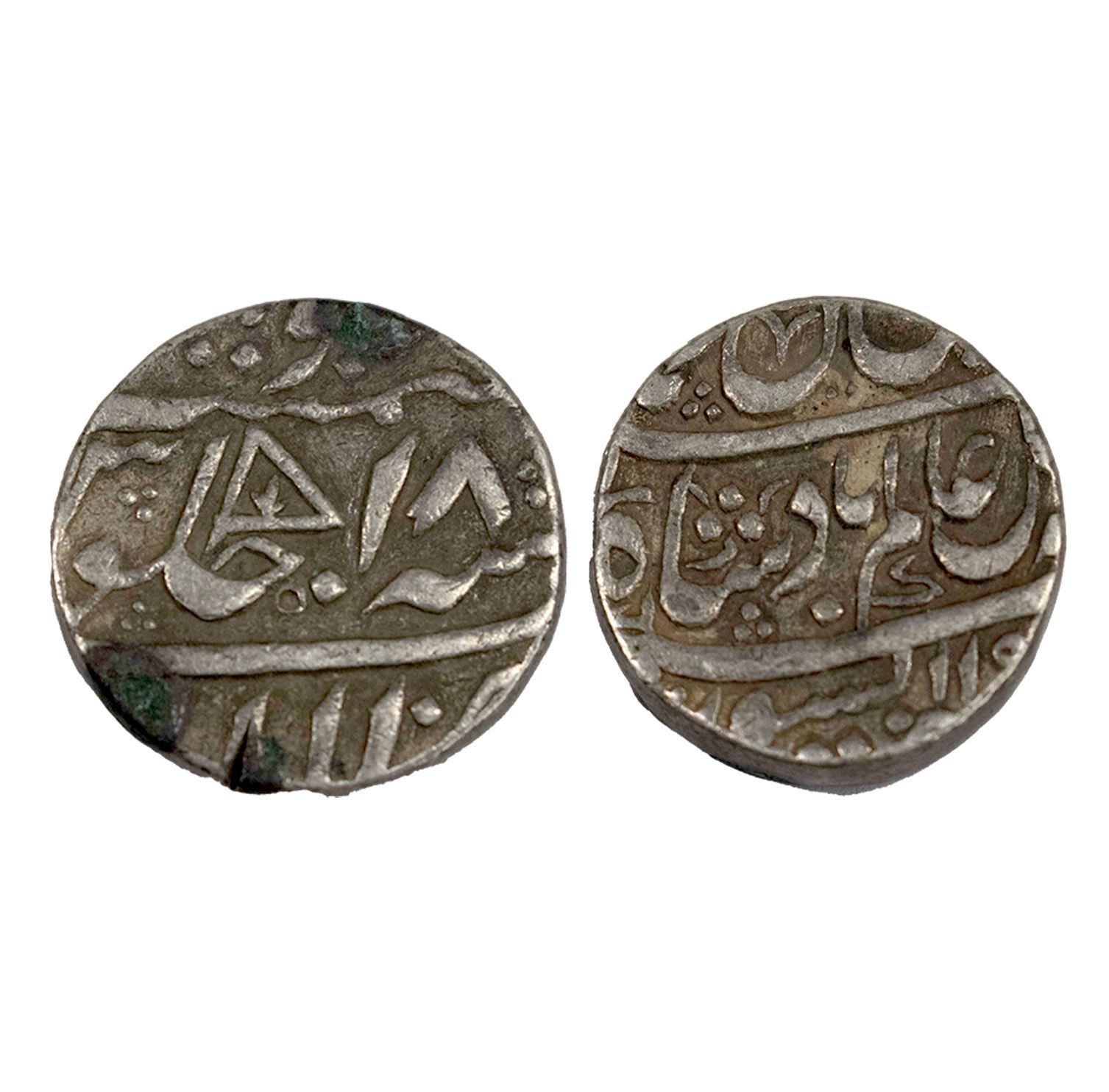 Awadh, Allahabad Mint, Silver Rupee, 11.19g, in the name of Shah Alam II, AH 119x/18, flag or Pataka as mint mark on rev. (KM 6.2). Very Fine, uncleaned.