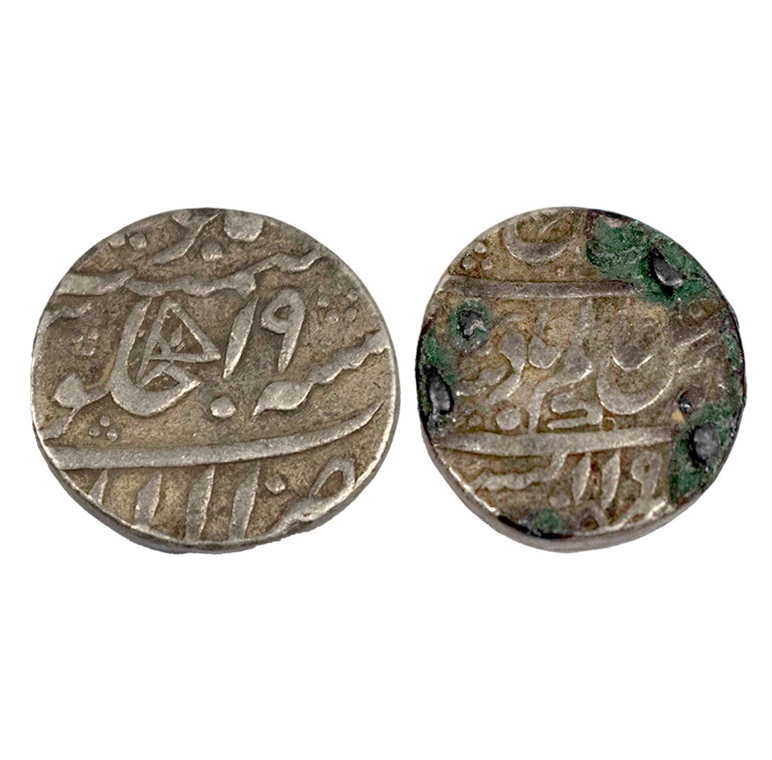 Awadh, Allahabad Mint, Silver Rupee, 11.20g, in the name of Shah Alam II, AH 119x/19, flag or Pataka as mint mark on rev. (KM 6.2). Very Fine, uncleaned.