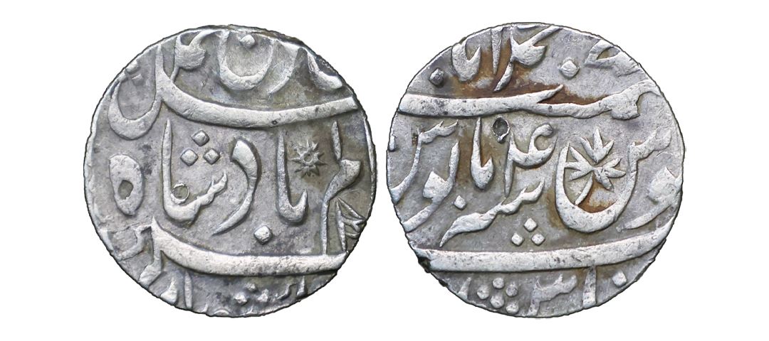 Awadh State, Muhammadabad Banaras Mint, Silver Rupee, 11.37g, in the name of Shah Alam II, RY 4, two prong flag as mint mark (KM 36.2). Extremely Fine, Rare.