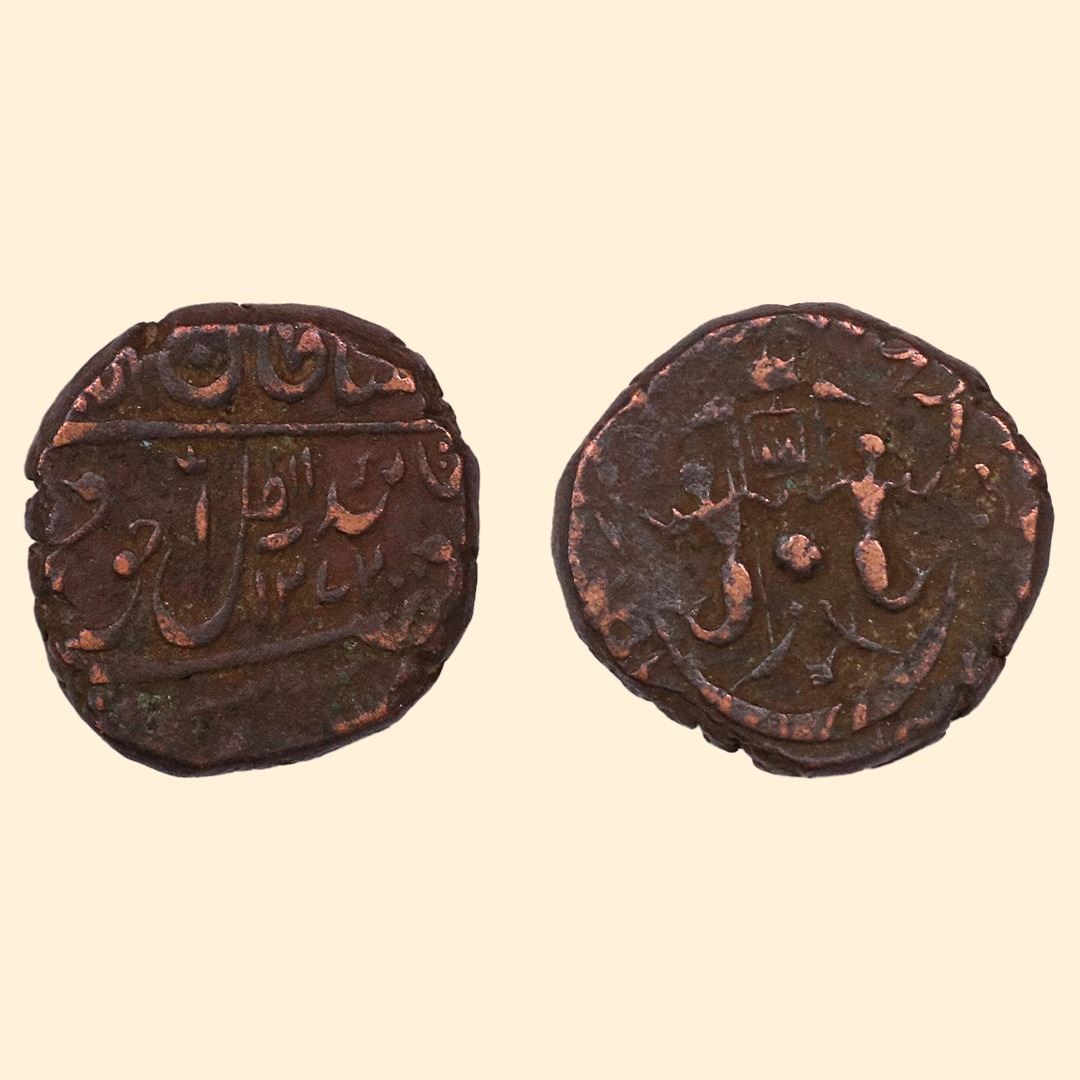 Awadh, Wajid Ali Shah (AH 1263-1272/ 1847-1856 AD), Copper Falus, 11.57gms, Lucknow Mint, AH 1272. (KM # 351.3).Fine