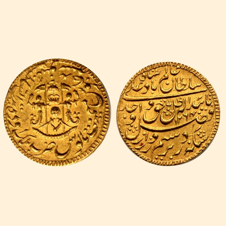 Awadh, Wajid Ali Shah (1847-1856 AD), Gold Ashrafi, Lakhnau Mint, AH 1264/RY 2, KM 378.2. Well-centered strike.