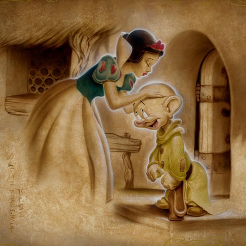 "Awaiting the Kiss" is a limited edition giclee on canvas, numbered and hand signed by Noah. This piece is licensed by Disney Fine Art. This piece has a 2" border and may be gallery wrapped or framed based on preference. Includes Certificate of Authenticity! Measures approx. 32" x 24" (image).