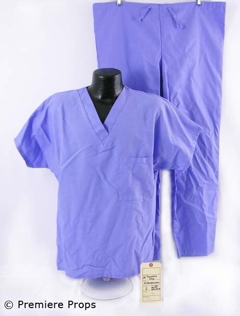 Clay's (Hayden Christensen) light blue "Cintas" scrubs: v-neck s/s shirt (inside tag reads "Clay") (size M) and drawstring waist pants (includes wardrobe tag / screen worn)