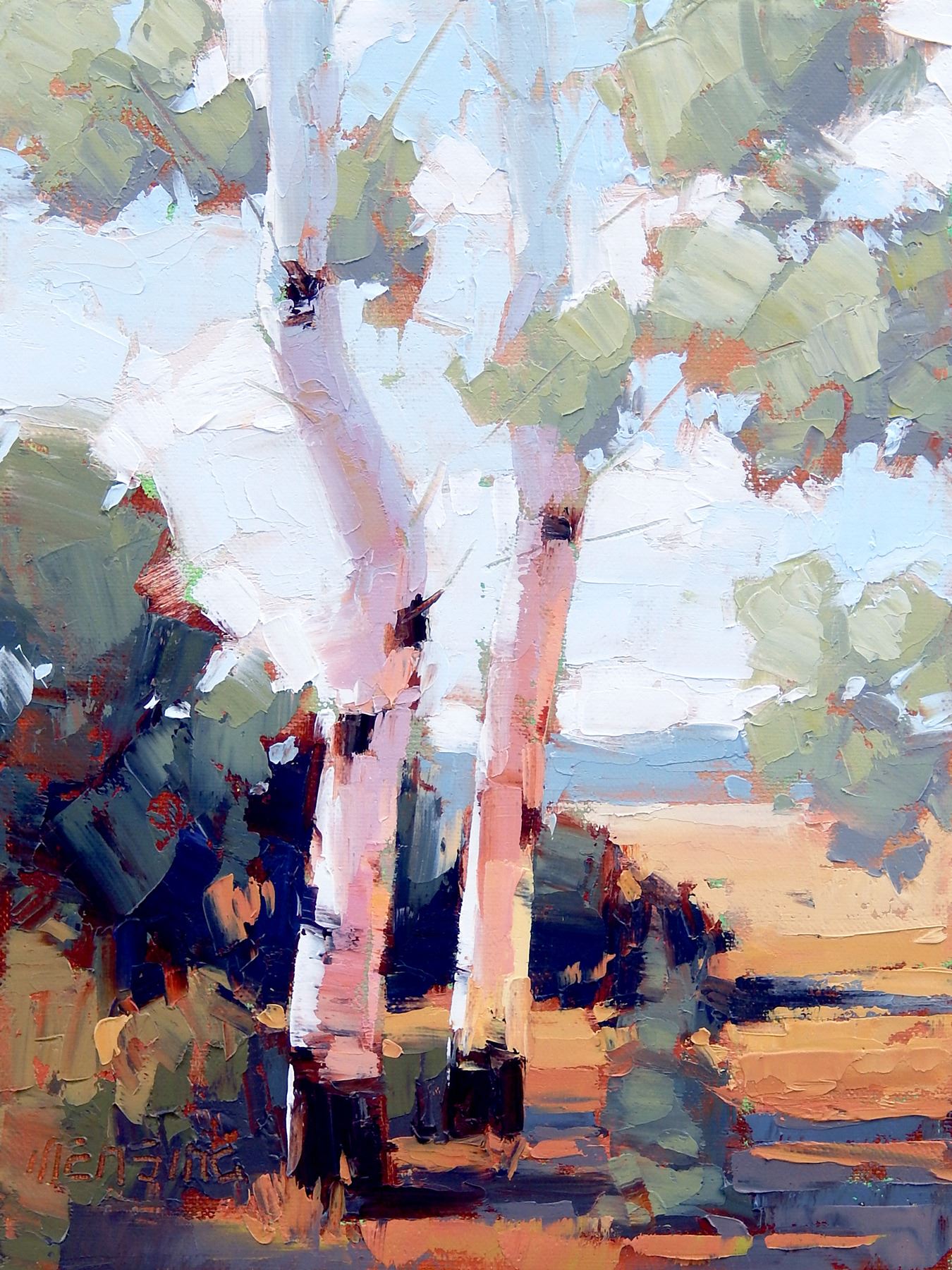 Description: Late summer aspen in the Sawtooth Mountains of central Idaho. Aspen trees are especially fun to paint - the light color of the trunks will reflect any and every color of the rainbow.