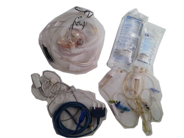 Screen used Antigen oxygen tubes (filled with realistic liquids), leeds and cables.