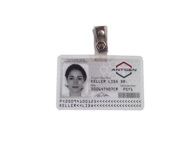 Lida's (Sandrine Holt) screen used, hero ID with clip. (approx.3.5" x 2")