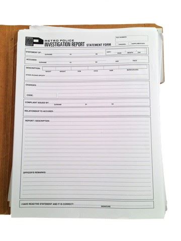 Screen used Metro Police Criminal Package Reference Record file with paperwork inside.