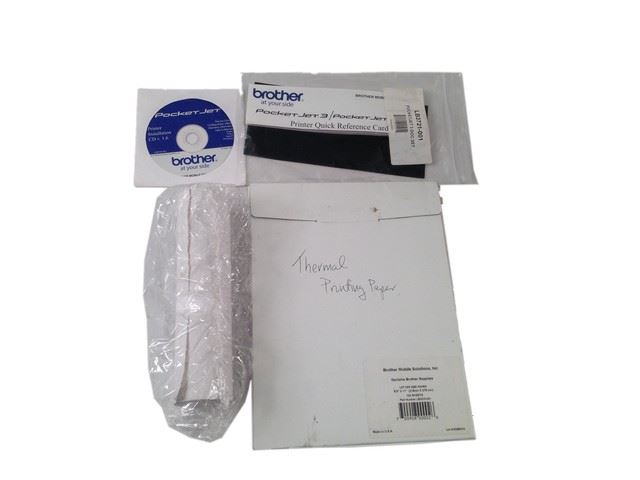 Screen used, Pocket jet Printer and Accessories. Comes with 6 rolls of printer paper, thermal printing paper, instruction manual, extra batteries, wires, and installation disk. ( printer approx. 10" x 1 1/2 " )