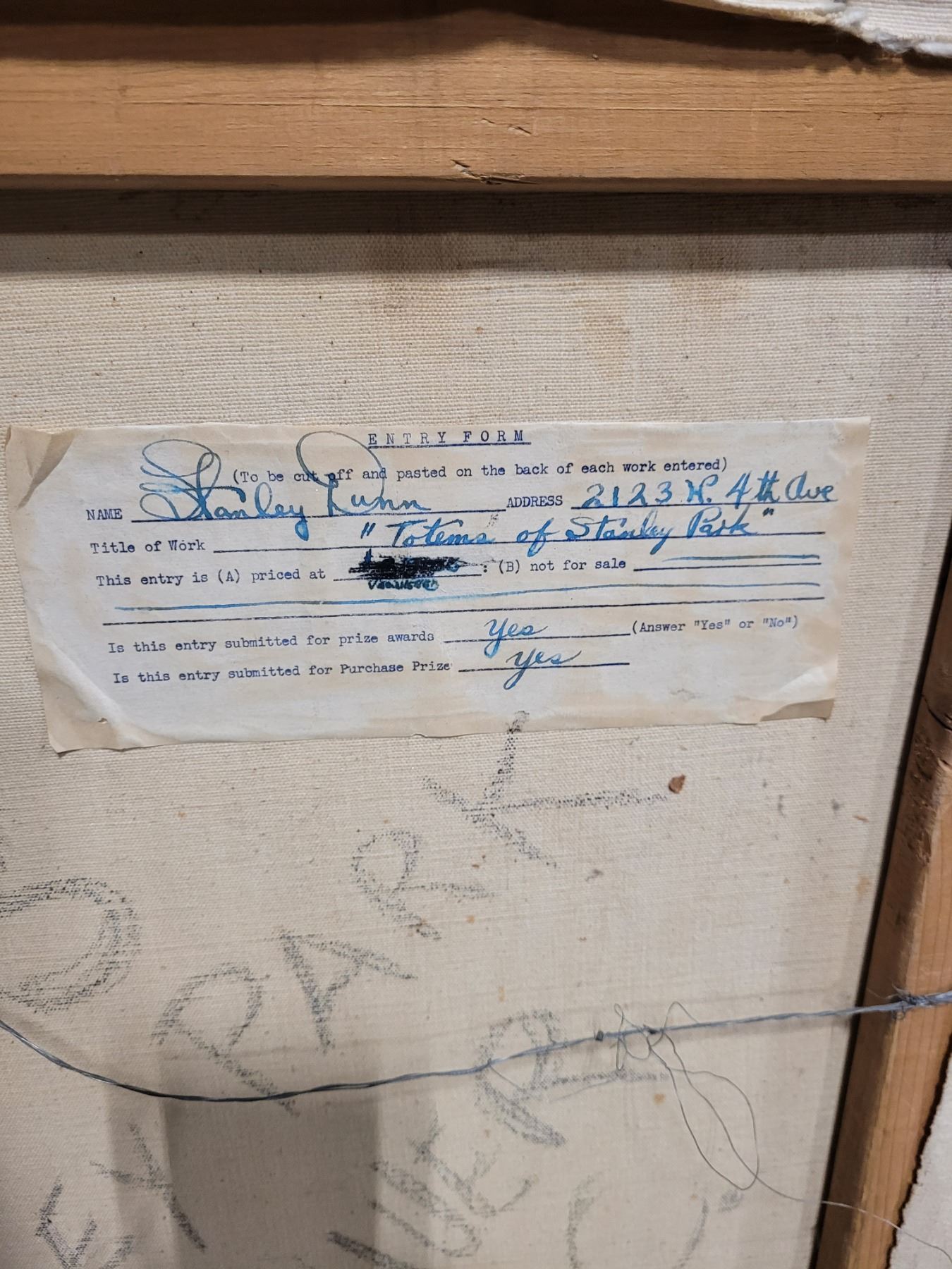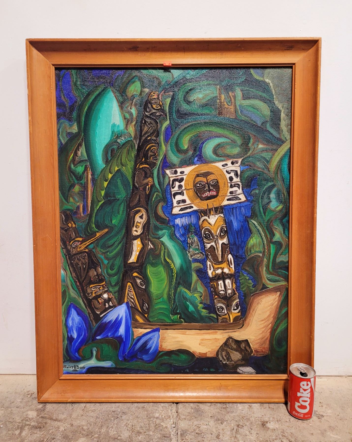 Award Winning 1946 Stanley U. Dunn Oil on Canvas "Totems" of Stanley Park, BC