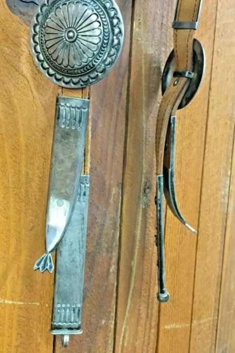Description: Here is a beautiful, award winning headstall by the multiple award winning Navajo artist Thomas Curtis. This fabulous headstall has stunning repousse and stamp work on the silver. It also has a great sandcast naja in the center of the brow band and is mounted on oak colored heavy duty leather. You can definitely see why this won first place at the Museum of Northern Arizona Flagstaff. Maker: Hallmarked T. Curtis, Thomas Curtis (1942-2013; Navajo). Active since 1960s. Approx Age: Ribbon won in 1989. Size: It is 19 inches long overall. Condition: Good for its age. Normal wear and minor imperfections expected on used and vintage items. Please look closely at the pictures as they are an important part of our description. Shipping: There will be a $10 handling / packaging fee for shipping this lot. The actual cost of postage will be added on top of that. BUY IT NOW: If you would like to buy this item now without waiting for the auction to end (this option is only available up to 48 hours before the auction starts to close), the “Buy it Now” price is the high estimate of this lot. If you would like to end the auction early and pay the high estimate (plus applicable fees), please contact us by phone or email and reference this lot.