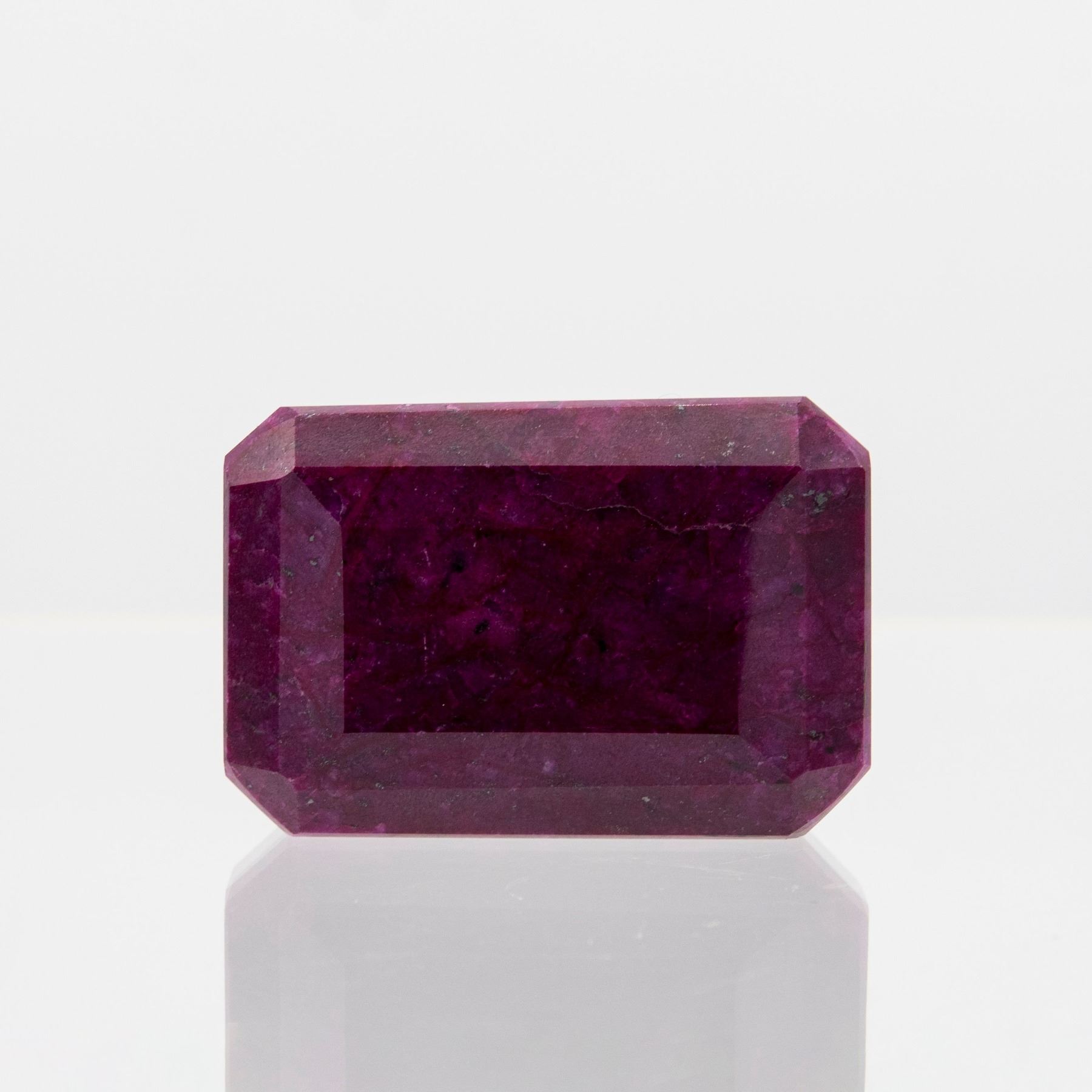 Awesome Large 391.60 Ct Certified Ruby. Strong color definition with full saturation and a fine tone. Emerald cut measuring 51 x 35 x 21 mm.
