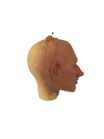 European AXE Commercial/Team America: World Police (2004) - Prototype male face with facial scruff covering the chin and upper lip. Made of latex. A 1 #3 written at the top. This head was crafted from Team America prototype parts for use in a European AXE Commercial. The characters in Team America were marionette puppets with interchangeable heads crafted by AnimatedFX, Inc.