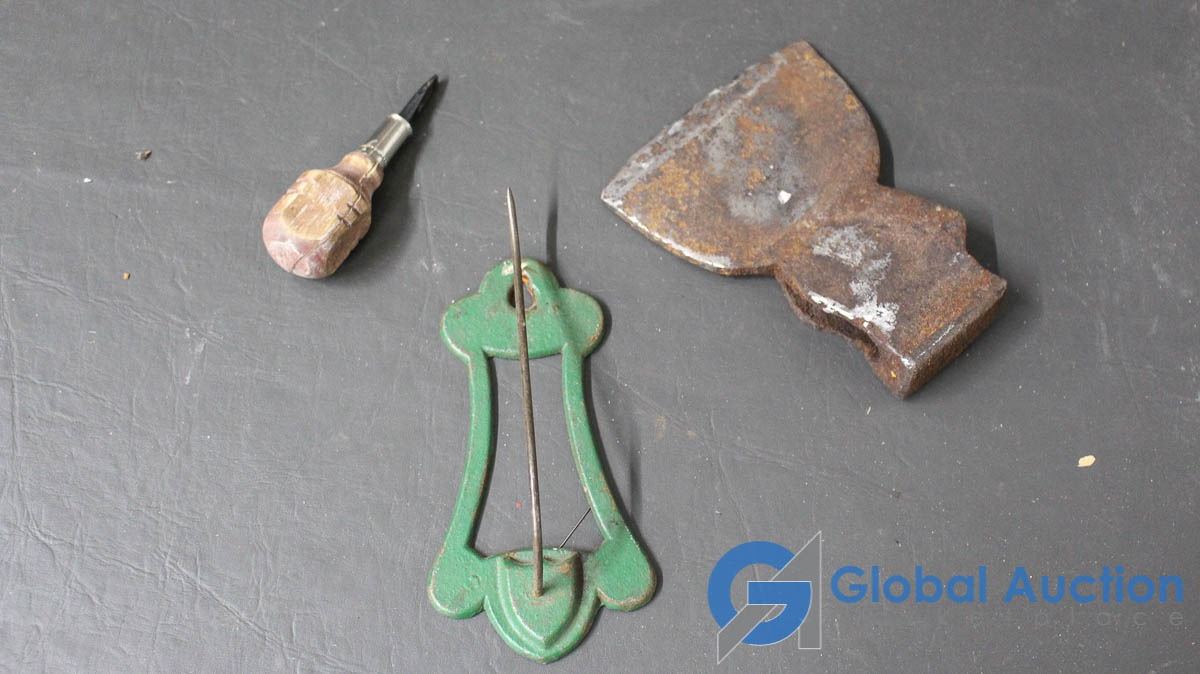 Axe Head, Vintage Screw Driver, Receipt Spike