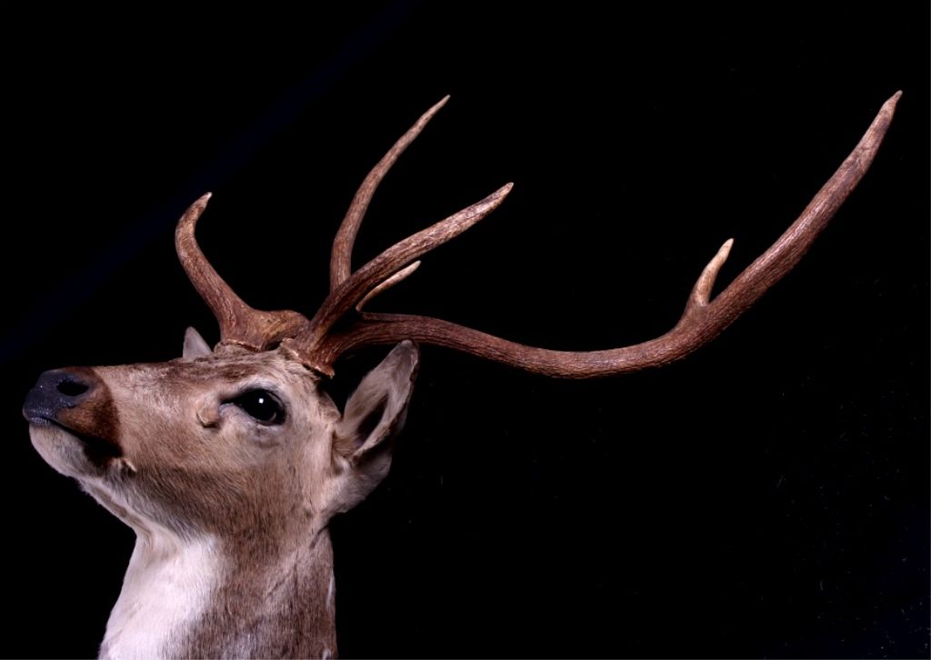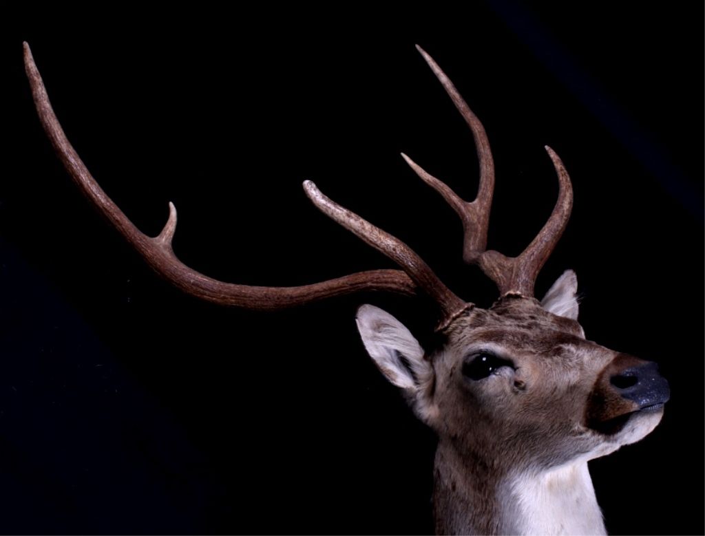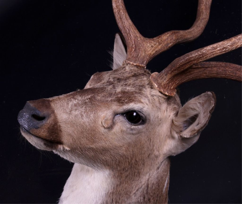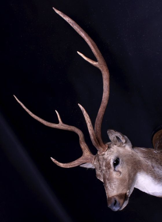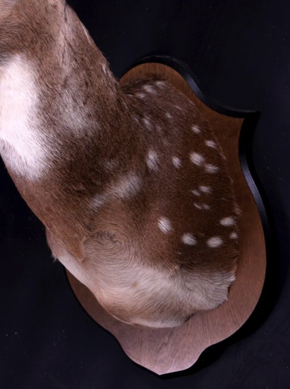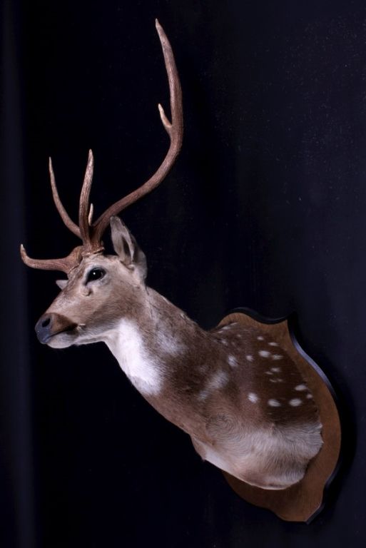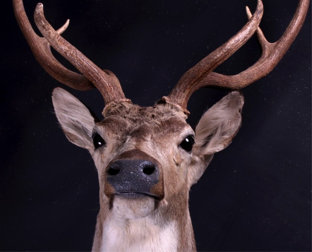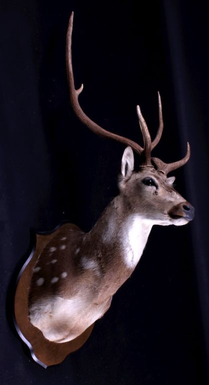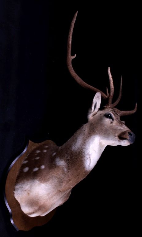 This is an Axis deer mount. The Axis, or Chital deer, is commonly found in the wooded regions of Southeast Asia. This mount shows the white spots near the shoulder which easily identifies the deer. The hide shows great color and the mount is in very good condition. The antlers measure 24.5" wide and are 24" tall. For shipping, the crate size will be 24" x 30" x 55" and will weigh 107 lbs. The packaging fee will be $86. (#3)