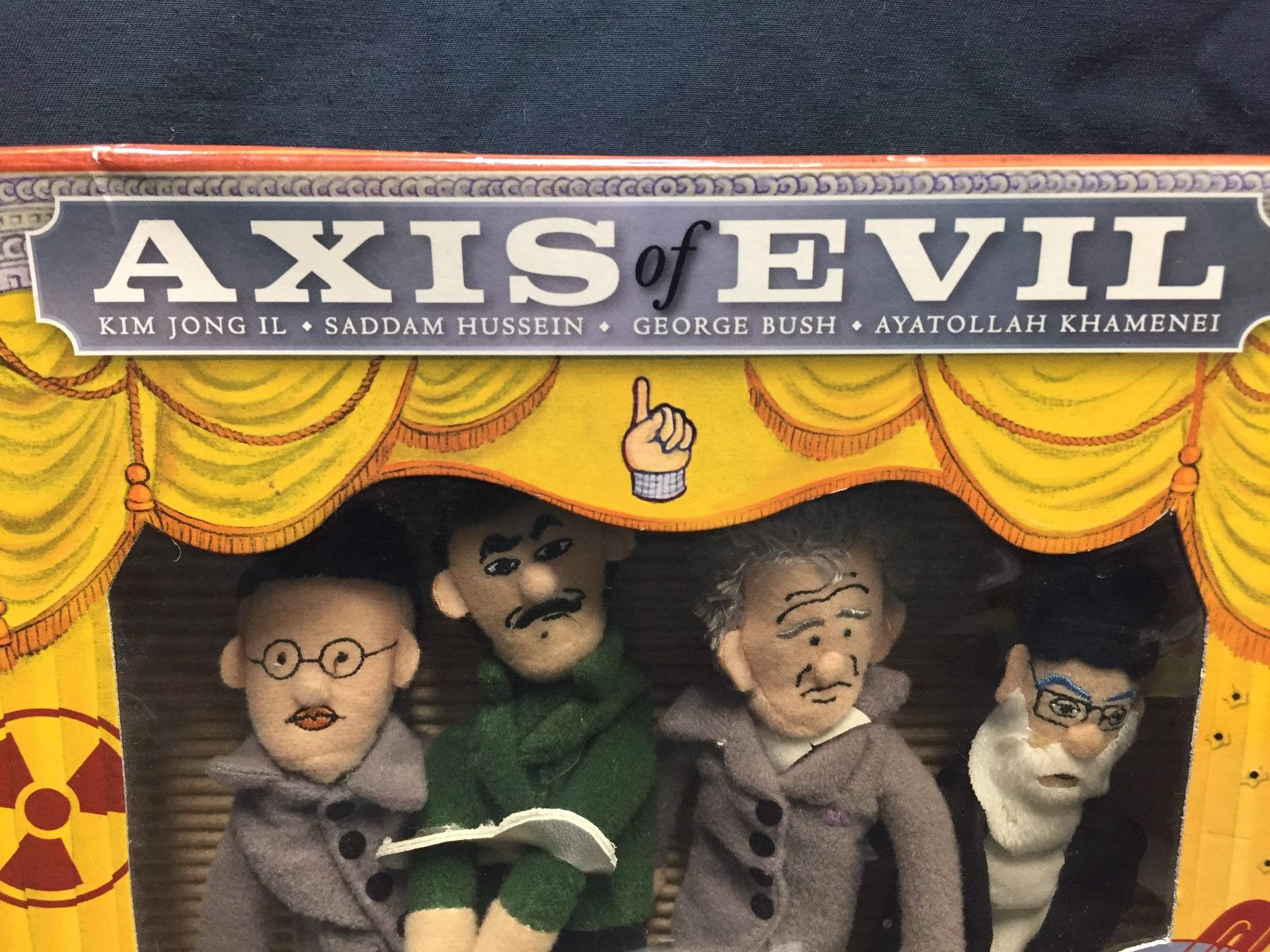 Axis of Evil Finger Puppets Kim Jong Saddam Hussein, George Bush Ayatollah Khamenei Still in Original Box