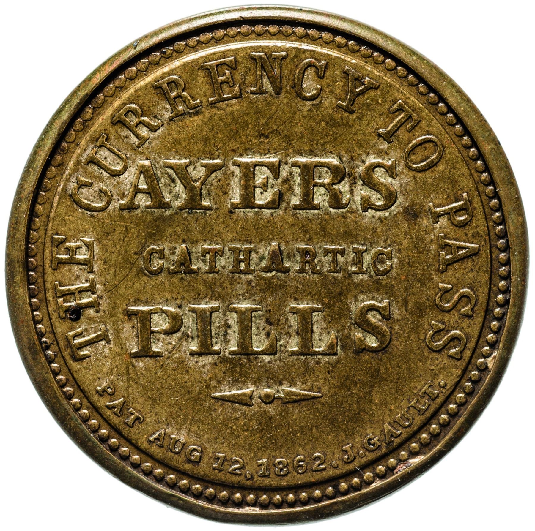Ayer's Cathartic Pills. 1 Cent, Short Arrows. HB-3, EP-2, S-2. Choice Very Fine.
