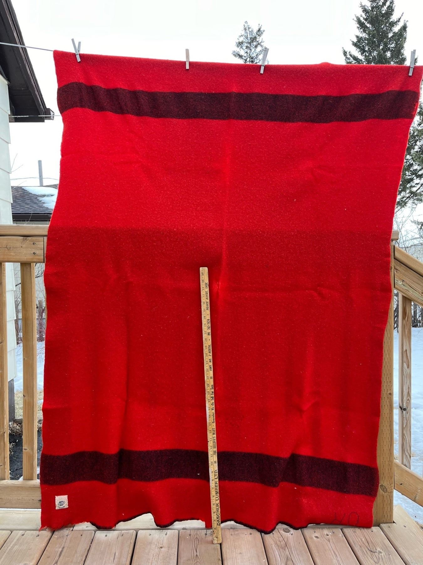 Ayers pure wool red Canadian blanket. (Hudson Bay replica?) Overall good condition. Been in storage tote for 40+ years