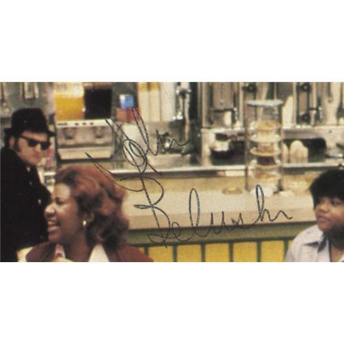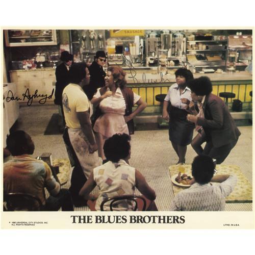 <B>Dan Aykroyd and John Belushi Signed "Blues Brothers" Photo.</B></I> A color 8" x 10" promo photo from the 1980 comedy, signed by both Aykroyd and Belushi in black ink. The photo features a shot from the sequence featuring Aretha Franklin and her rendition of "Think." In Excellent condition with a very light amount of tanning.<I>Accompanied by LOA from PSA/DNA.</B></I><BR><BR><b>Shipping:</b> Flat Material, Small (<a target="_blank" href="http://www.heritageauctions.com/common/shipping.php">view shipping information</a>)