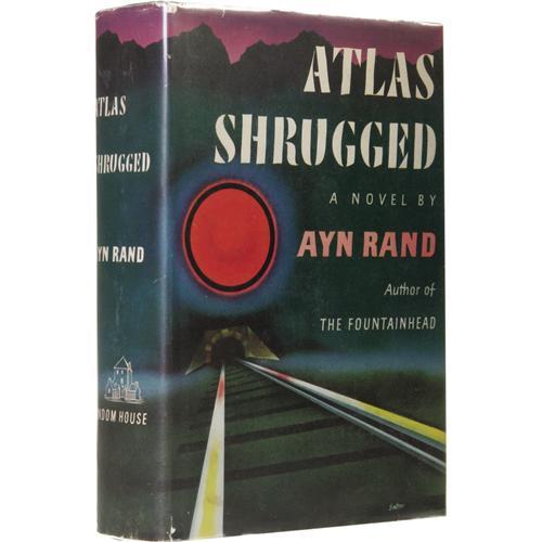 <B>Ayn Rand Signed Presentation Copy: <I>Atlas Shrugged</B></I></B></I> (New York: Random House, 1957), first edition, first printing, publisher's green cloth, author's initials gilt on front cover, black and gilt label printed on spine, tan endpapers; very gently worn, with dust jacket . Important presentation copy signed and inscribed in blue ballpoint by the author on the front free endpaper: "<I>To Toby and Shirley Holtzman -- / -Cordially-- /Ayn Rand / August 22, 1960.</B></I>" Dust jacket in near fine condition with just a tiny tear and chips at spine, a pristine copy.<BR><BR><b>Shipping:</b> Books & Catalogs (<a target="_blank" href="http://www.heritageauctions.com/common/shipping.php">view shipping information</a>)