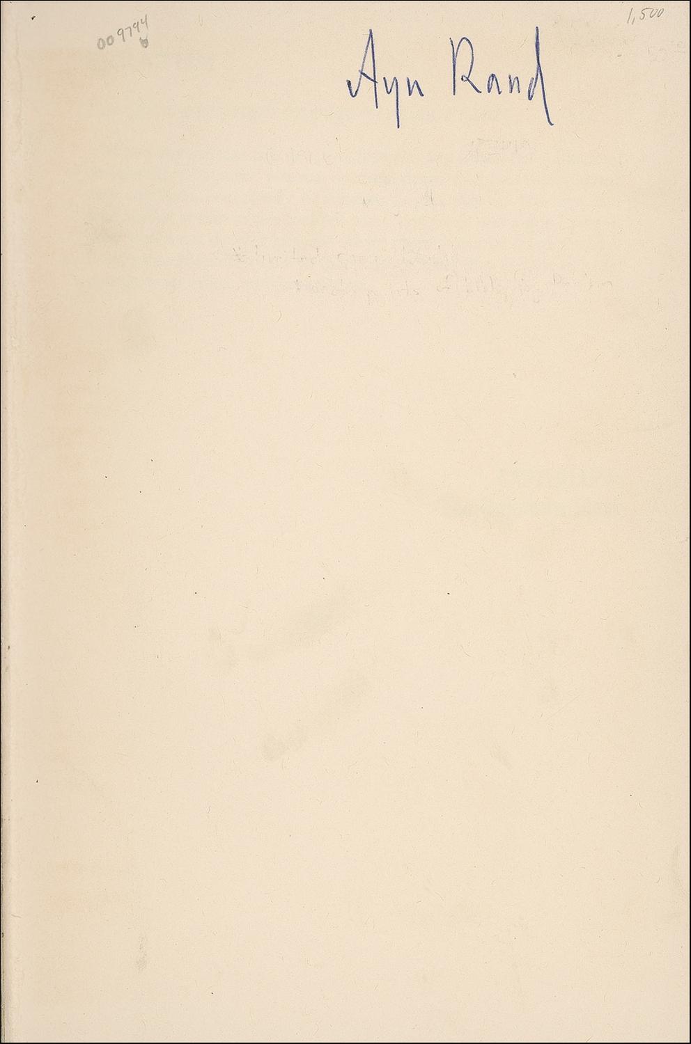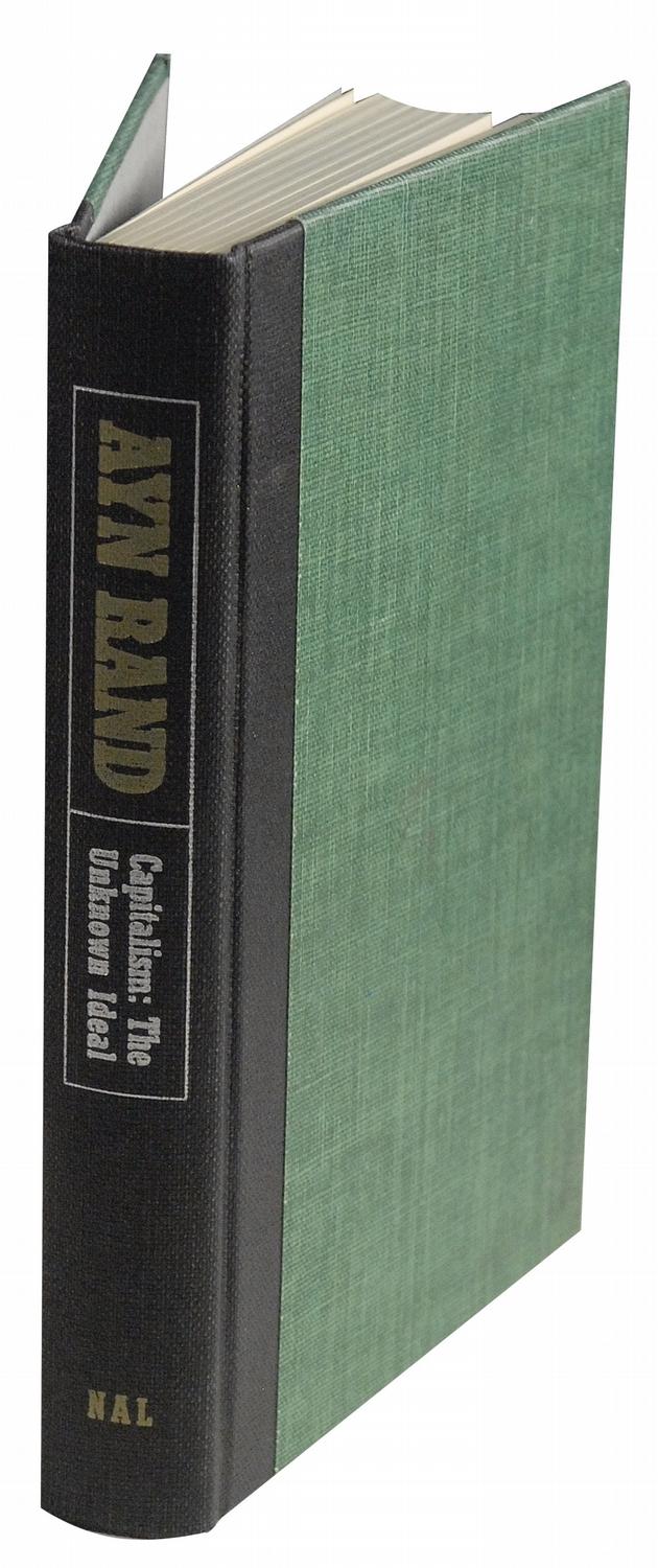 Russian-born author (1905–1982) who famously espoused an ‘objectivist’ philosophy. Her novels and philosophical works, including The Fountainhead and Atlas Shrugged, take a place among the most influential literature of the 20th century. Signed book: Capitalism: The Unknown Ideal. First edition. NY: The New American Library, 1966. Hardcover, 5.75 x 8.5, 309 pages. Signed in blue ballpoint on the first free end page, “Ayn Rand.” Faint creasing touching her last name, the front board partially separated along the hinge, paper loss to the inside front cover, two light pencil notations on the signed page, and evidence of a removed gift inscription beneath the signature, otherwise fine condition. A neatly signed example from the controversial author.