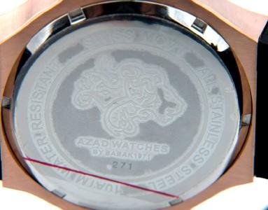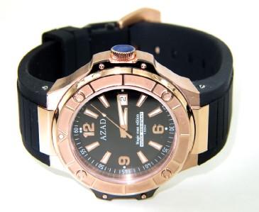 Azad Stainless Steel Rubber Strap Watch. Watch's Weight: 140.8 grams.The measurements of watch head: 42 x 44 mm and 8 mm in thickness.The length of watch: 10".Water Resistant.Swiss made.Rubber Strap is 20 mm wide
