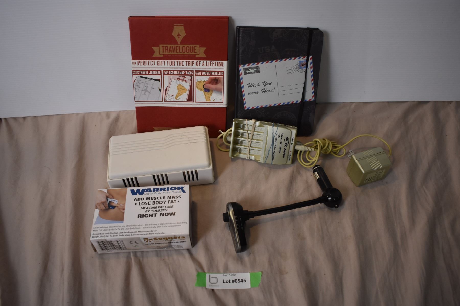 Azeca BTC008 Bluetooth In-Car FM Transmitter, Muscle Fat measuring tool, Battery charger, travel books