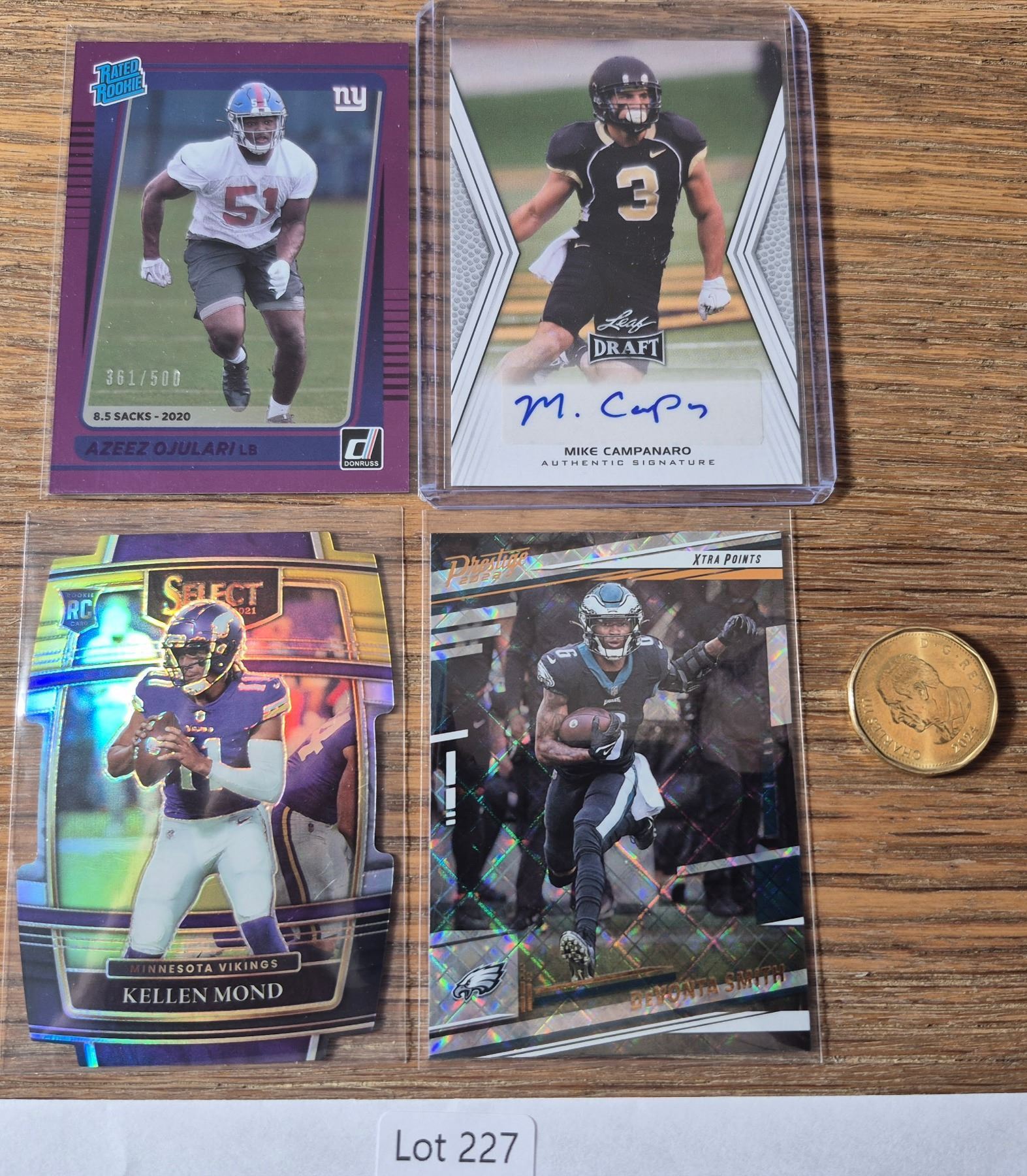 Includes Ojulari Rated Rookie 361/500, Campanaro Auto, Mond Rookie, and DeVonta Smith Xtra Points. All cards in excellent to mint condition.