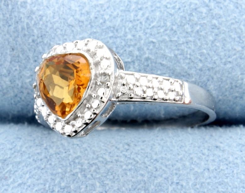 Darling heart shaped sterling silver ring with beautiful Azotic Topaz at the center and sparkles with 0.01 carats of diamonds. 2.3g Size 8