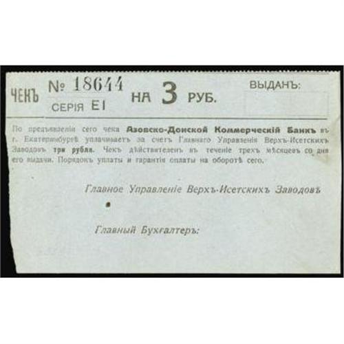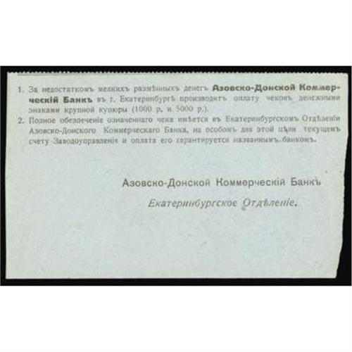 <style type="text/css"> body, td, th { font-family: Arial, Helvetica, sans-serif; font-size: 12px; color: #482424; margin: 0px; padding: 0px; } #header { background-image: url(http://www.bowersandmerena.com/ebay/images/template_v3_01.gif); clear: both; background-color: #590303; border-top-width: 2px; border-top-style: solid; border-top-color: #B38C4F; } #header #header_wrapper { height: 75px; clear: both; width: 800px; margin-right: auto; margin-left: auto; background-image: url(http://www.bowersandmerena.com/ebay/images/template_v3_03.gif); background-repeat: no-repeat; background-position: right; color: #F3EDCC; } #header #header_wrapper #header_logo { float: left; height: 75px; width: 444px; background-image: url(http://www.bowersandmerena.com/ebay/images/template_v3_02.gif); background-repeat: no-repeat; font-size: 10px; text-transform: capitalize; color: #B38C4F; } #header #header_wrapper #header_right { float: left; height: 75px; width: 356px; text-align: right; } #header #header_wrapper #header_right #headerLoginBtn { margin-bottom: 30px; } #header #header_wrapper #header_right input#txtSearch { color: #B49056; border: 1px solid #B49056; width: 175px; padding-top: 3px; padding-right: 3px; padding-bottom: 4px; padding-left: 3px; } #nav { height: 37px; background-image: url(http://www.bowersandmerena.com/ebay/images/template_v3_05.gif); clear: both; } #nav #nav_wrapper { height: 35px; width: 800px; margin-right: auto; margin-left: auto; border-left-width: 1px; border-left-style: solid; border-left-color: #B38C4F; } #nav #nav_wrapper a { padding-right: 15px; padding-left: 15px; border-right-width: 1px; border-right-style: solid; border-right-color: #B38C4F; height: 25px; padding-top: 10px; display: block; float: left; text-decoration: none; font-weight: bold; color: #5D0303; } #nav #nav_wrapper a:hover { color: #B38C4F; } #nav #nav_wrapper #search { float: right; padding-top: 7px; } #nav #nav_wrapper #search #txtSearch { font-family: Arial, Helvetica, sans-serif; font-size: 10px; text-transform: uppercase; color: #D2AE75; border: 1px solid #B38C4F; padding: 3px; } #content_bgd { background-image: url(http://www.bowersandmerena.com/ebay/images/template_v3_09.gif); background-repeat: repeat-y; background-position: center; padding-top: 15px; padding-bottom: 15px; background-color: #FBFBDB; } #content_wrapper { clear: both; height: auto; width: 800px; margin-right: auto; margin-left: auto; } .LotDetailWhite { line-height:normal; font-size:13px; font-family: arial,helvetica,sans-serif; color: White; font-weight: bold; } .LotDetailInformation { line-height:normal; font-size: 13px; font-family: arial,helvetica,sans-serif; } .LotDetailMessage { line-height:normal; font-size: 13px; font-family: arial,helvetica,sans-serif; color: red; } } tr.HeaderAuctionTitle td { color: #000000; font-weight: bold; padding: 2px; background-image: url(http://www.bowersandmerena.com/ebay/images/template_v3_05.gif); background-repeat: repeat-x; border-bottom-width: 1px; border-bottom-style: solid; border-bottom-color: #B38C4F; } table.AuctionSummary a, table.AuctionSummary a:link, table.AuctionSummary a:visited { color: #0000FF; text-decoration: none; } } td.tableHeaderLeft { border-left-width: 1px; border-left-style: solid; border-left-color: #B38C4F; } td.tableHeaderRight { border-right-width: 1px; border-right-style: solid; border-right-color: #B38C4F; } td.tableCellMiddle { border-left-width: 1px; border-left-style: solid; border-left-color: #B38C4F; border-right-width: 1px; border-right-style: solid; border-right-color: #B38C4F; padding: 5px; } tr.footer td { border-top-width: 1px; border-top-style: solid; border-top-color: #B38C4F; } </style> </head> <body> <div id="header"> <div id="header_wrapper"> <div id="header_logo"> </div> <div id="header_right"> </div> </div> </div> <div id="nav"> <div id="nav_wrapper"> <a href="http://www.bowersandmerena.com">Our eBayLive Auctions</a> <a href="#PaymentInfo">Payment Information</a> <a href="#ShippingInfo">Shipping Information</a> <a href="#About">About Bowers and Merena</a> </div> </div> <div id="content_bgd"> <div id="content_wrapper"> <table width="100%" border="0" cellpadding="5" cellspacing="0" class="AuctionSummary"> <tbody> <tr class="HeaderAuctionTitle" style="height: 25px;"> <td align="left" class="tableHeaderLeft" > </td> <td align="center" class="tableHeaderRight"> <span style="font-size: large;">Lot #2418. Azov-Don Commercial Bank, Ekaterinberg, Scrip or Exchange Note.</span> </td> </tr> <tr> <td colspan="3" class="tableCellMiddle"> ND (1920s), 3 Rubels, P-Unlisted, Denis #447, AU condition, gray-blue paper.