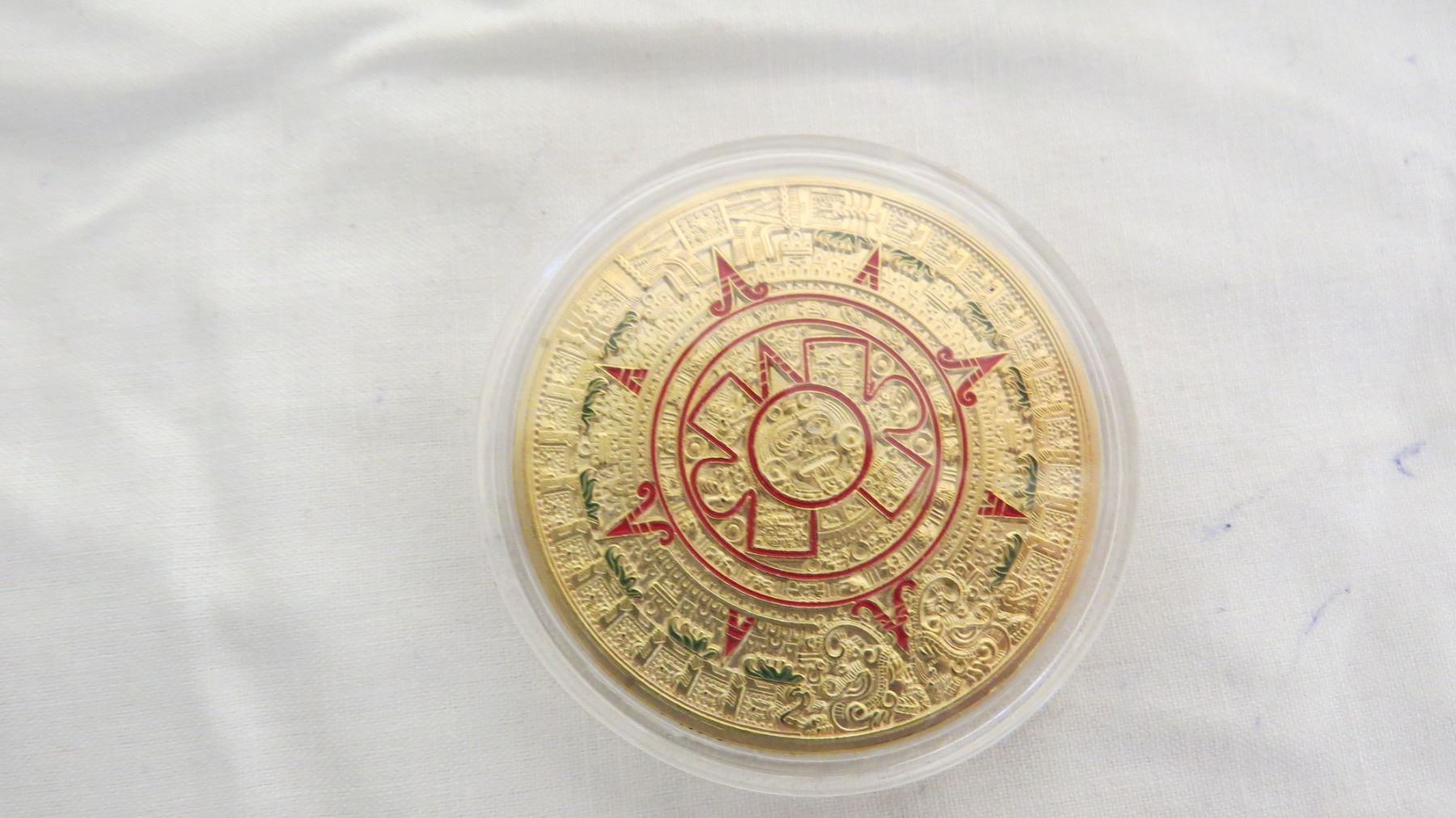 Aztec Gold Calendar Coin in case