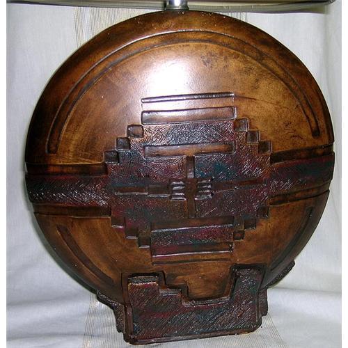 This is a beautiful lamp it has a felt covered bottom, so no scraches from this lamp. It is a Aztec or Old World look. Very nice addition to your decoration or just that unique great lamp you've been looking for. The lamp can be sold with or without the shade. Thanks for stopping by The Ladies Attic - Things Collected. Please take the time to View Sellers Other items button. God Bless and have a wonderful day!